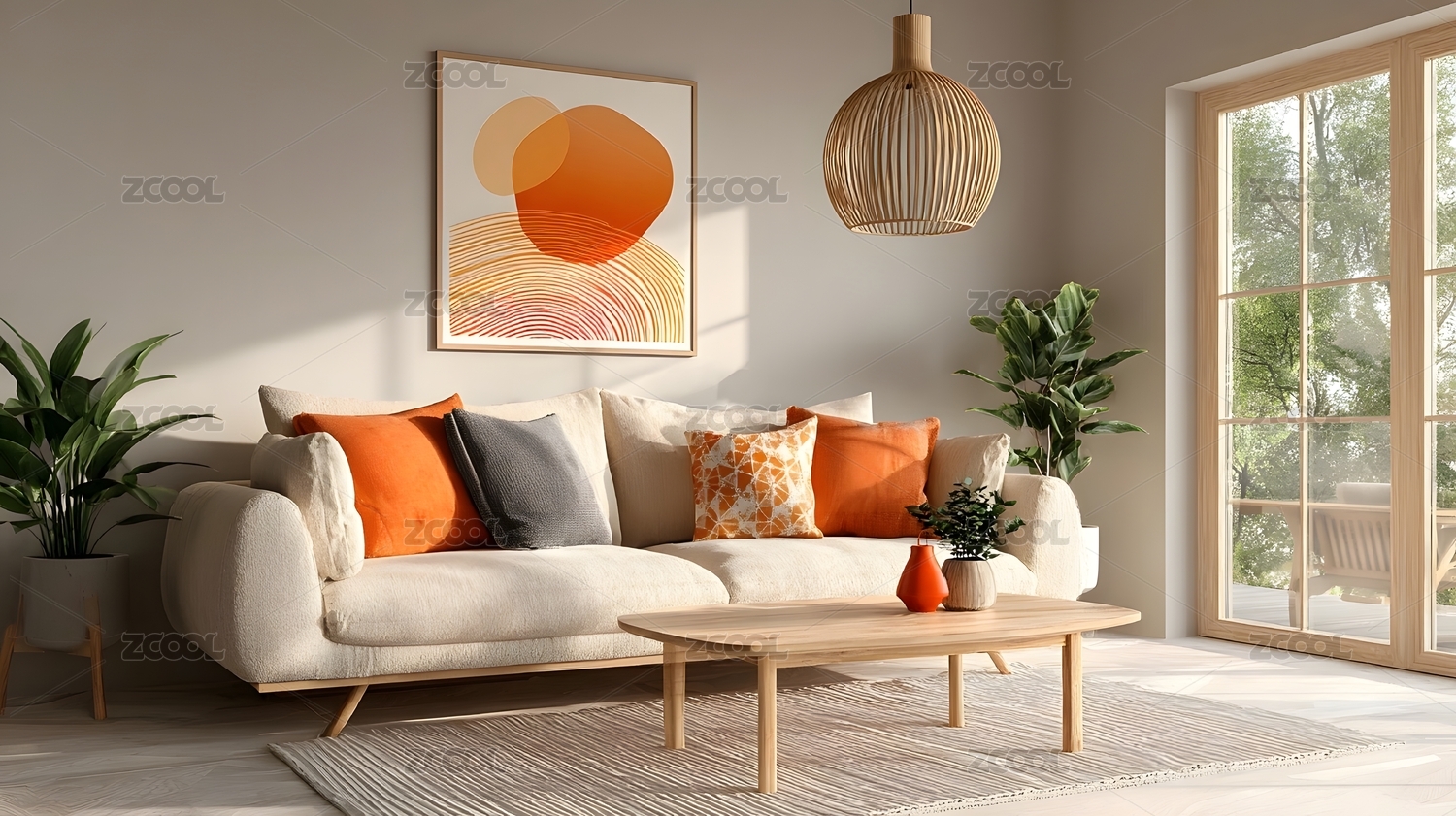 橘色系家居客厅
