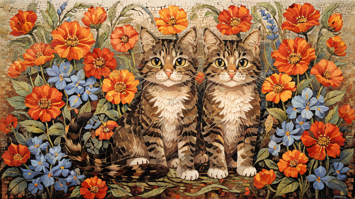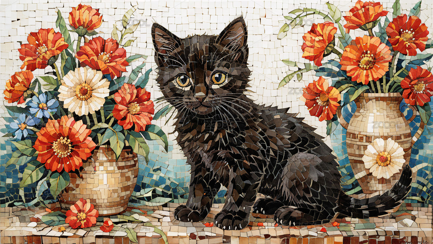 马赛克,装饰画,艺术,碎片,插画,动物,猫,小猫,狸花猫