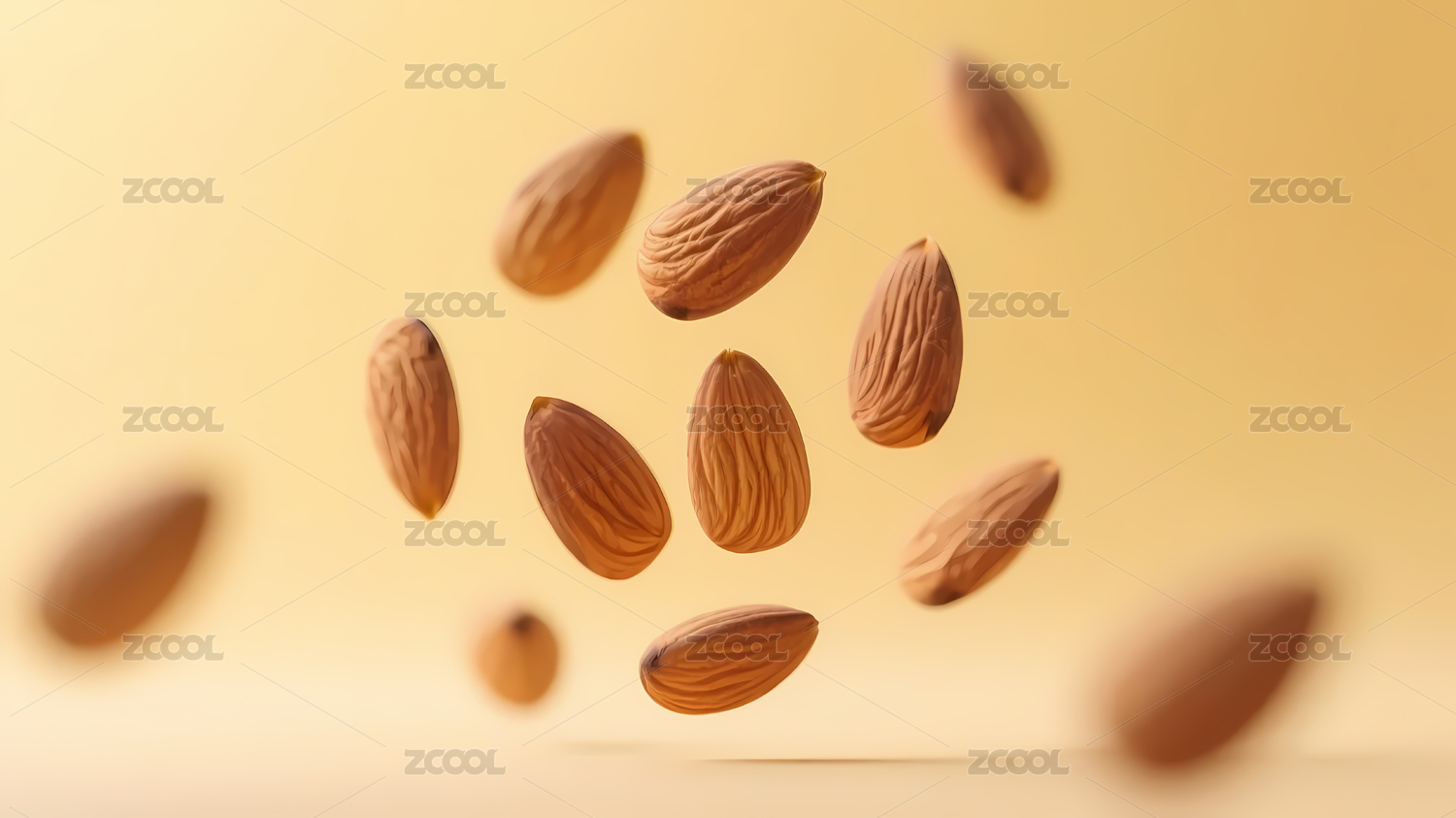 漂浮杏仁浅黄背景