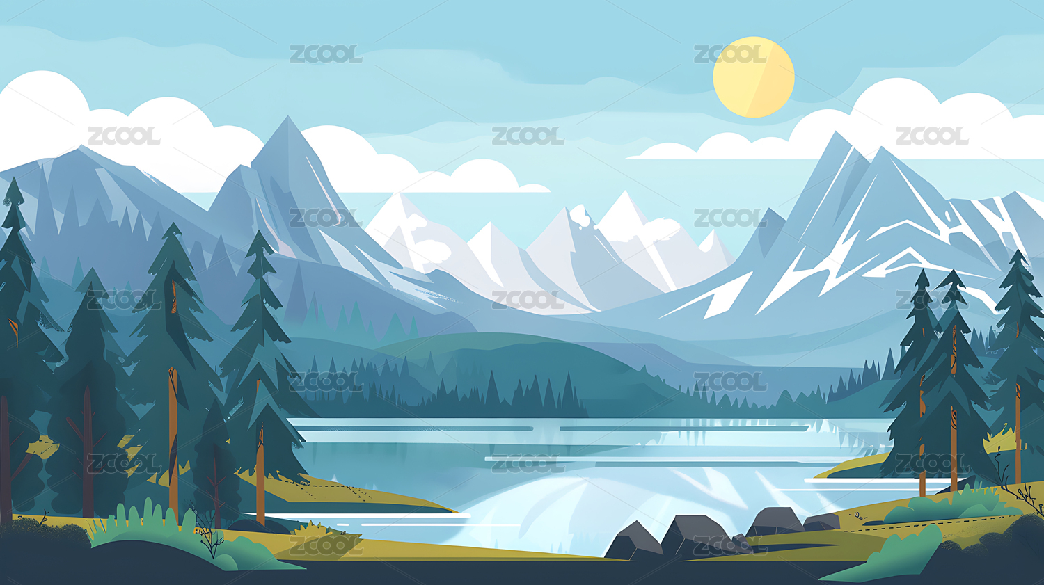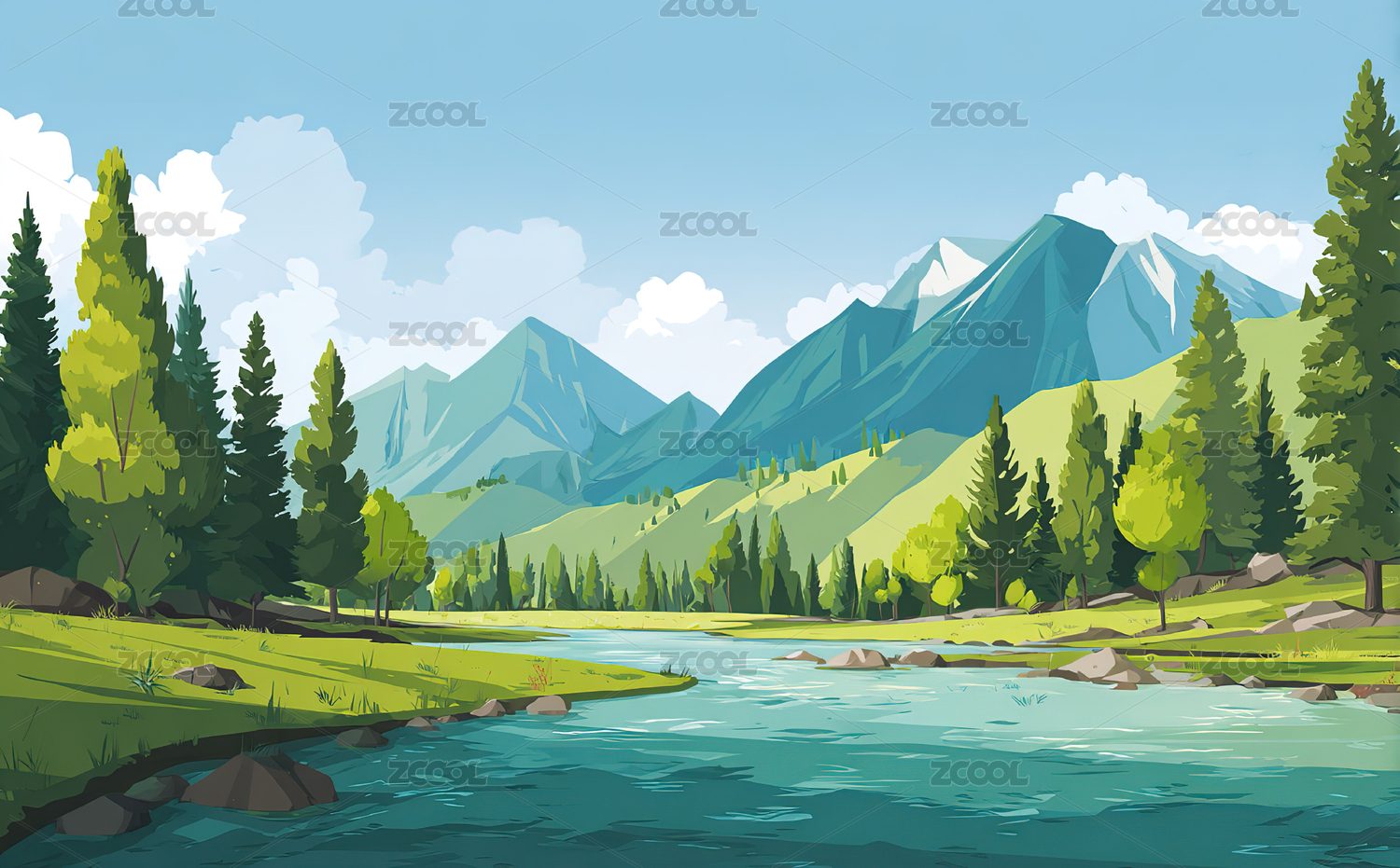 水坝,水力,发电,设施,建筑,卡通,造型,水流,闸门,绿植