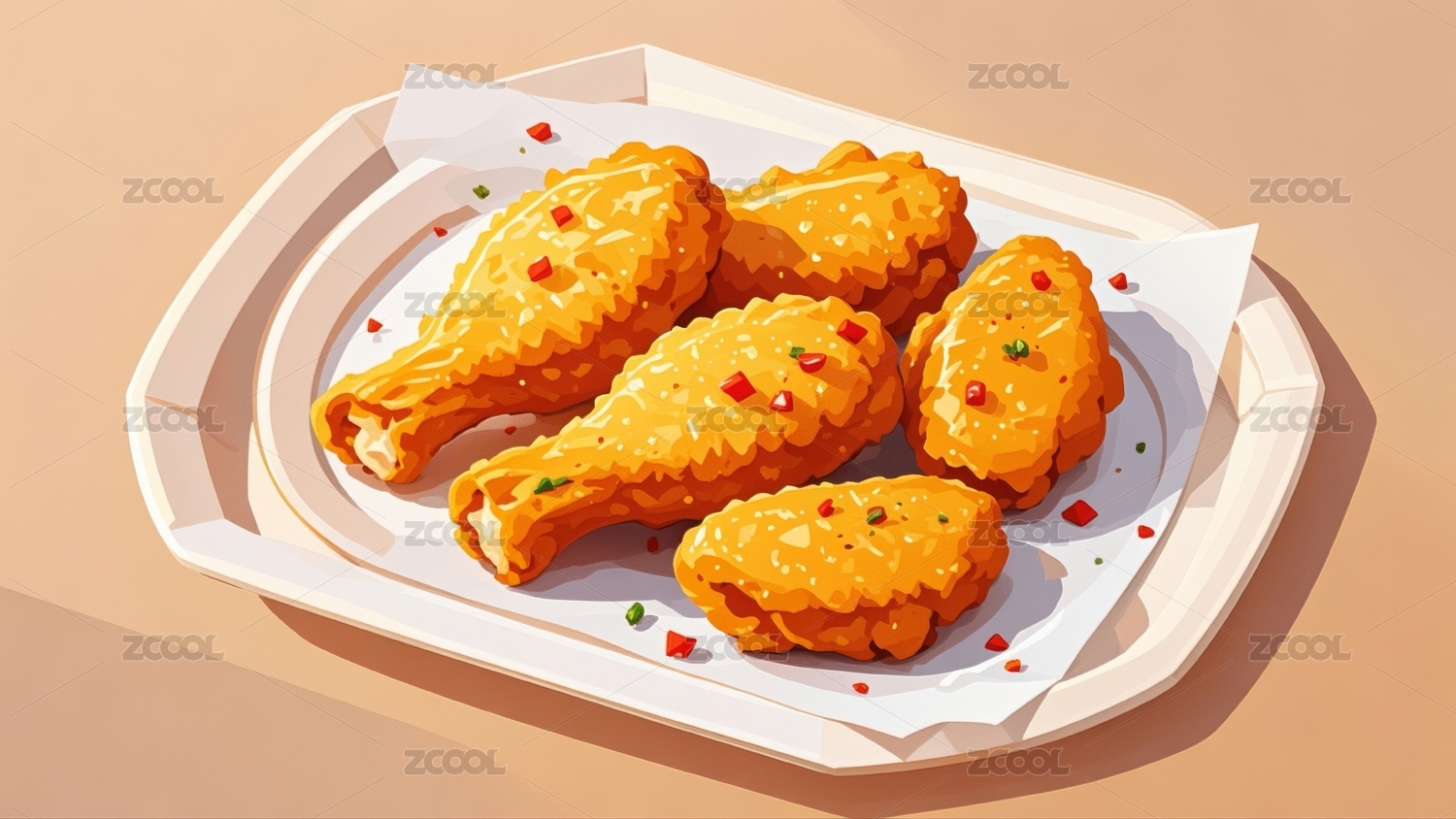 鸡腿,鸡翅,烤鸡,鸡肉,炸鸡腿,盘子,葱花,酱汁,美食,烹饪