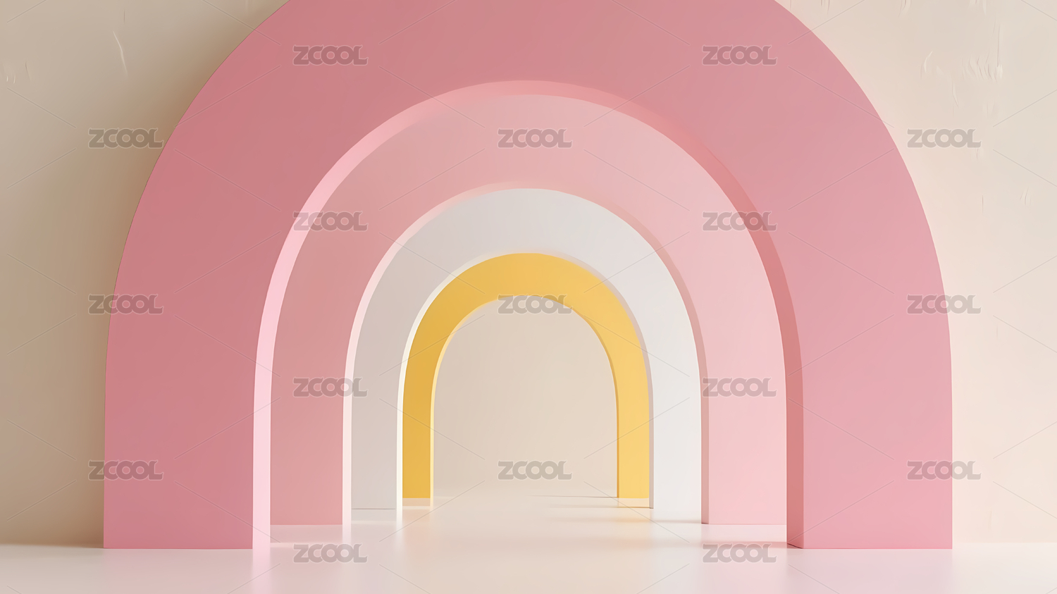 简约,现代,设计,艺术,几何,创意,背景,拱门,长廊,粉色