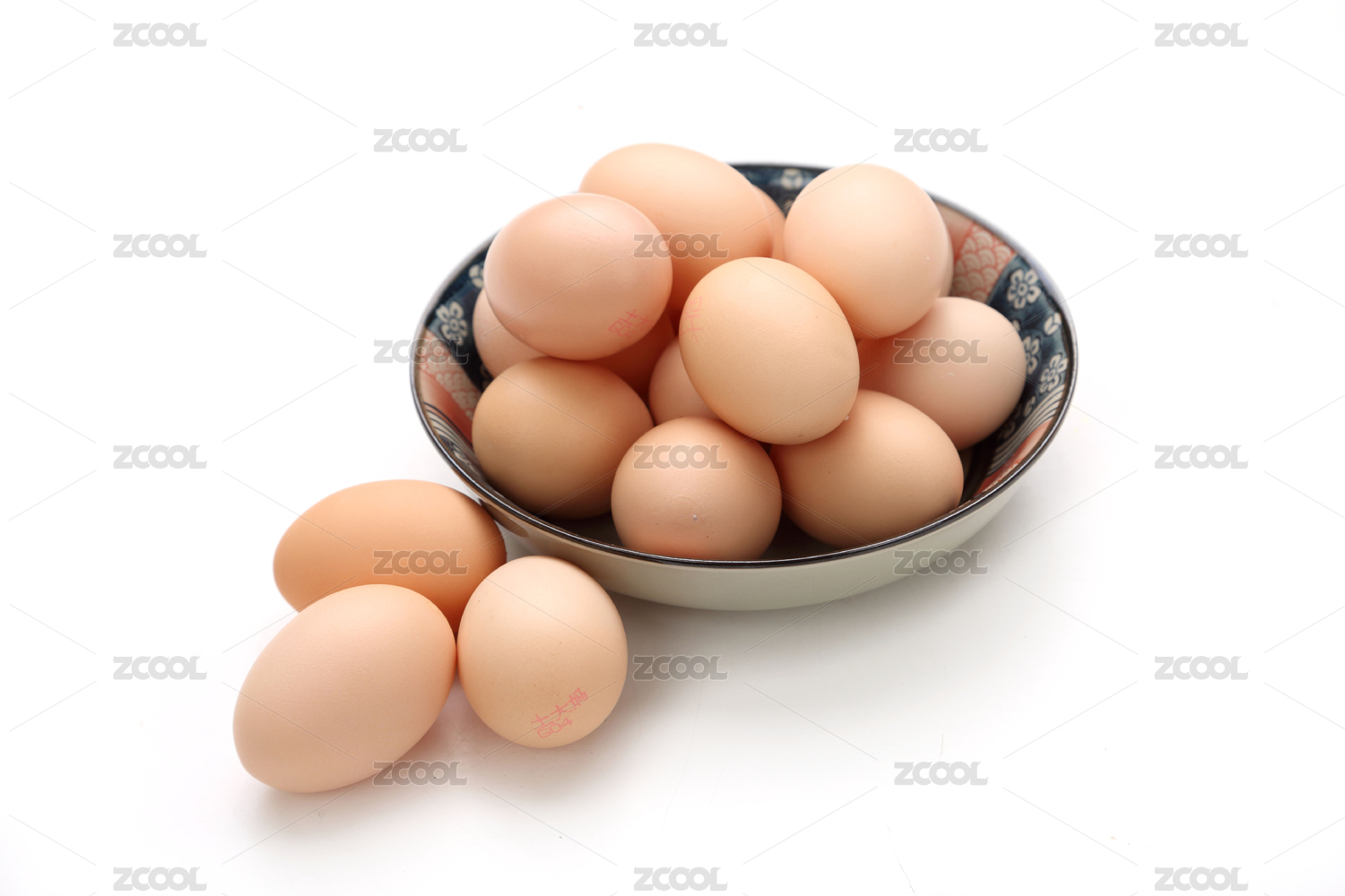 白底上蓝子里的草鸡蛋