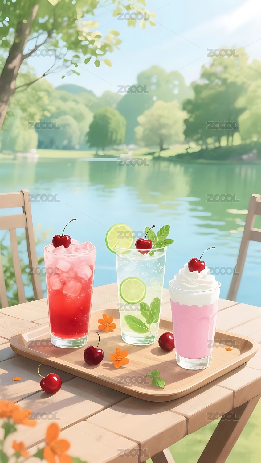 湖畔边的清爽饮品