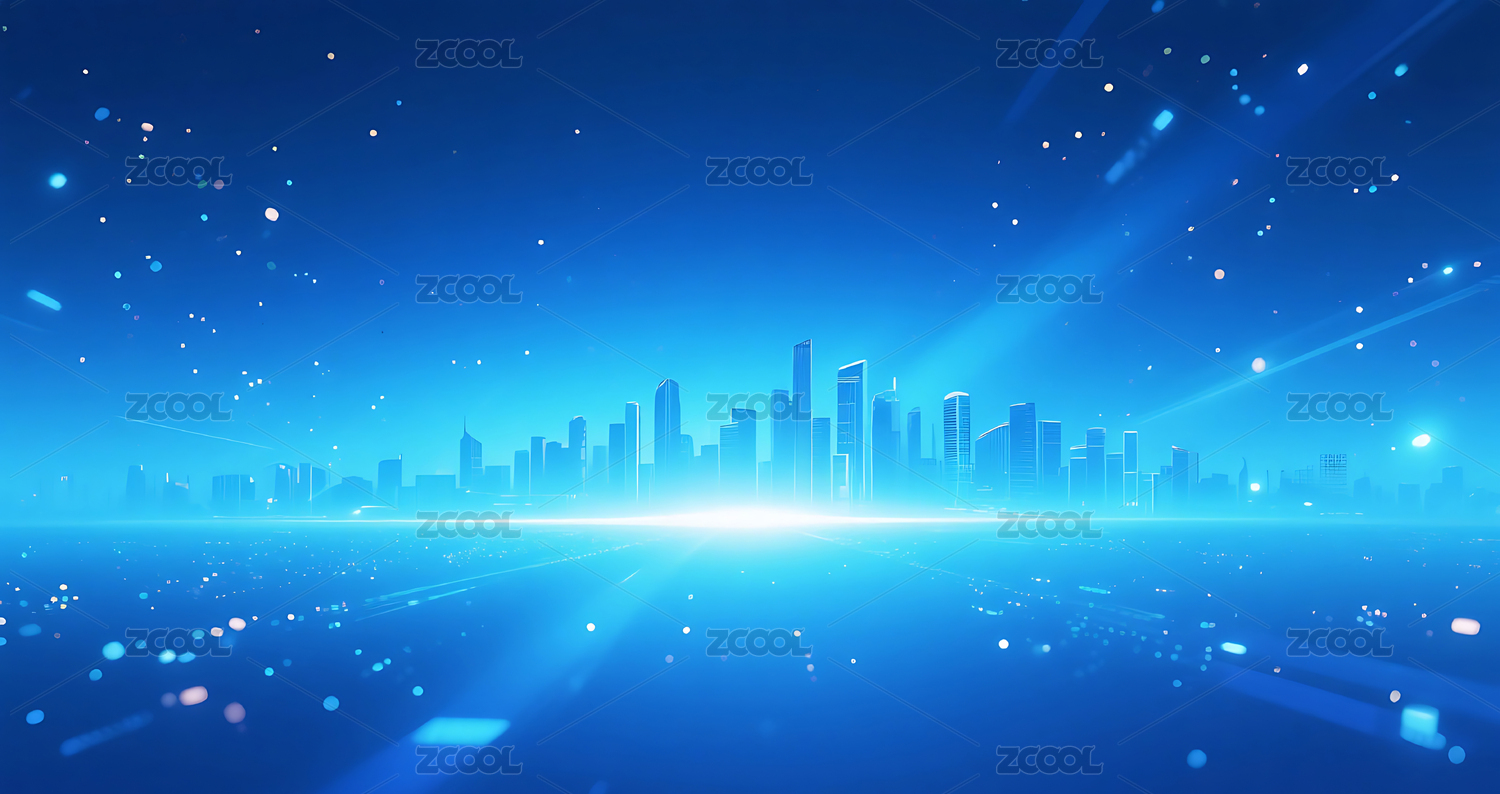 蓝色粒子光效光斑城市建筑背景