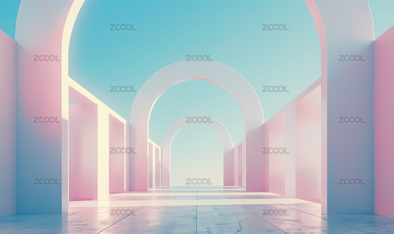 梦幻粉色蓝色走廊