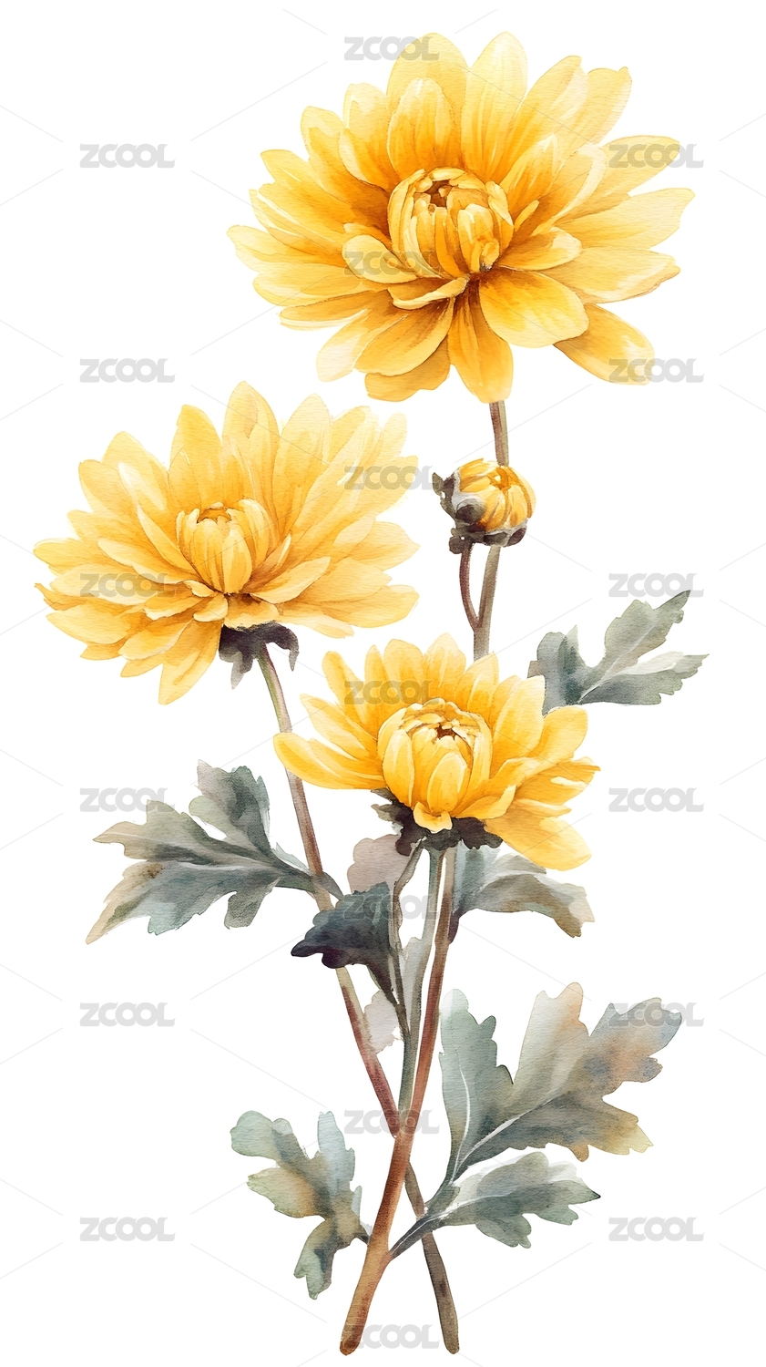 黄色菊花水彩画