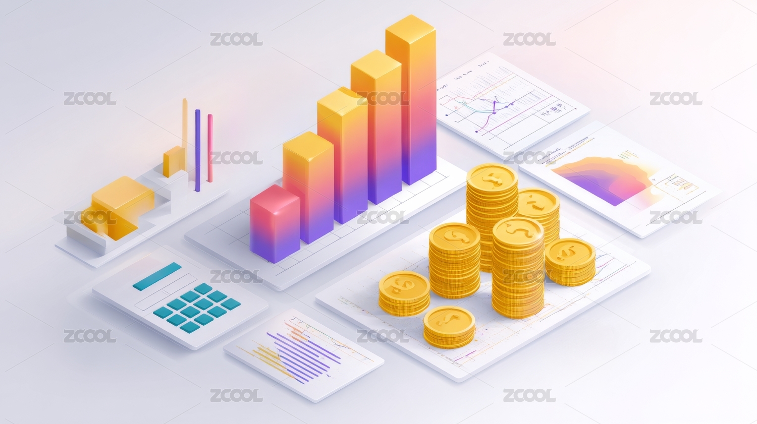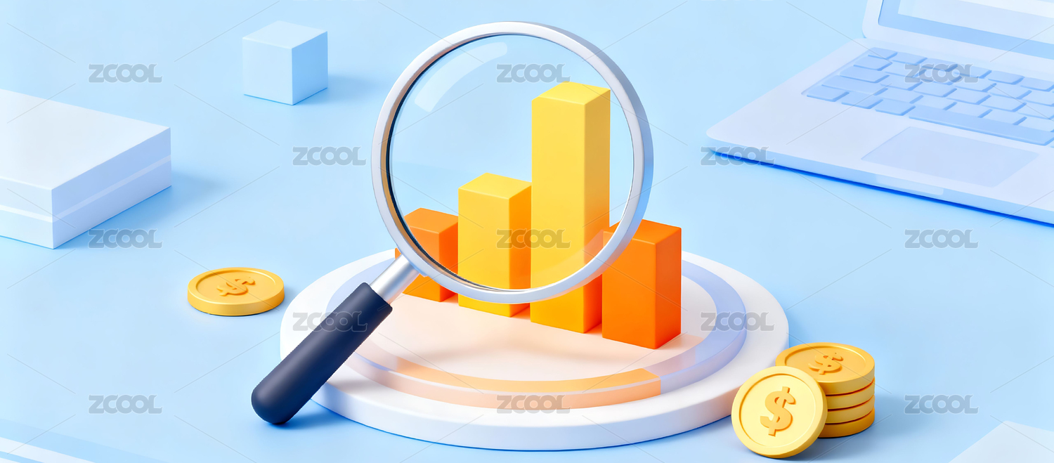 财务增长,数据分析,投资回报,商业智能,金融科技,财富管理,增长趋势,放大镜,金币,图表