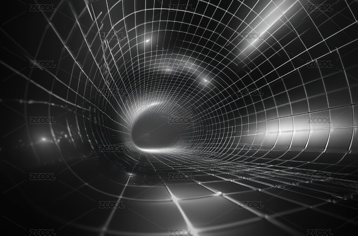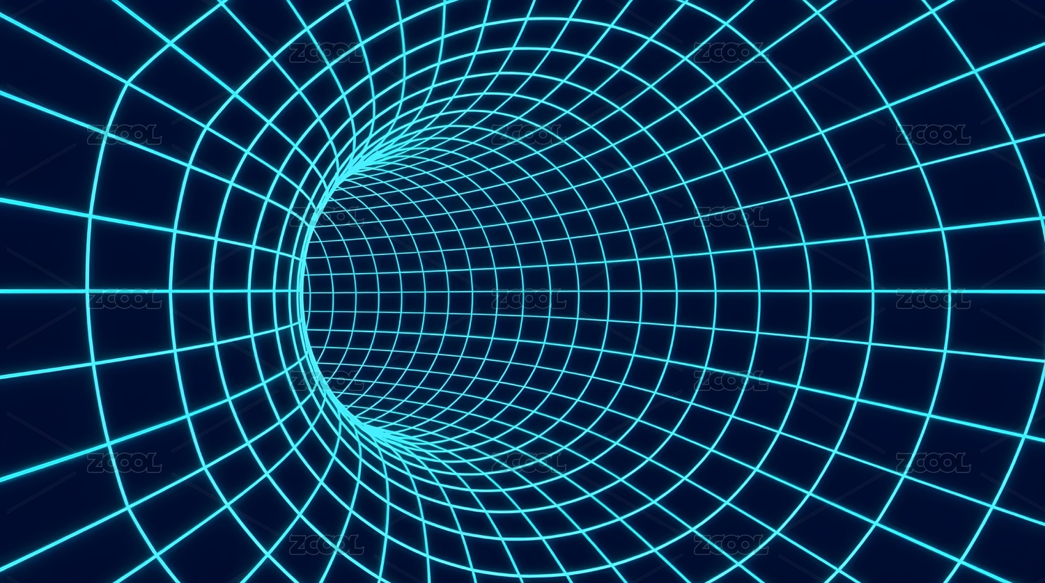 蓝色网格隧道光影效果