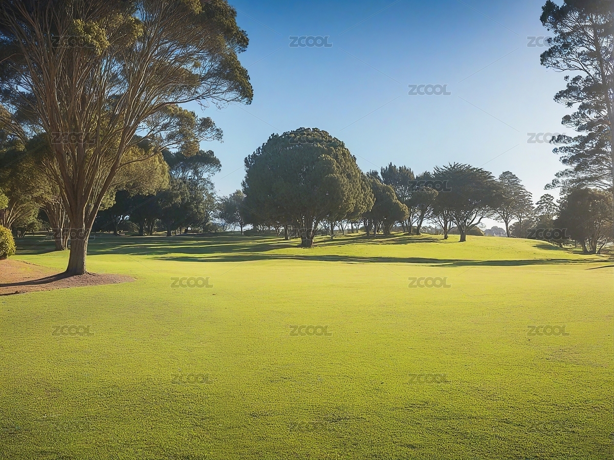 逆光下的高尔夫草地
