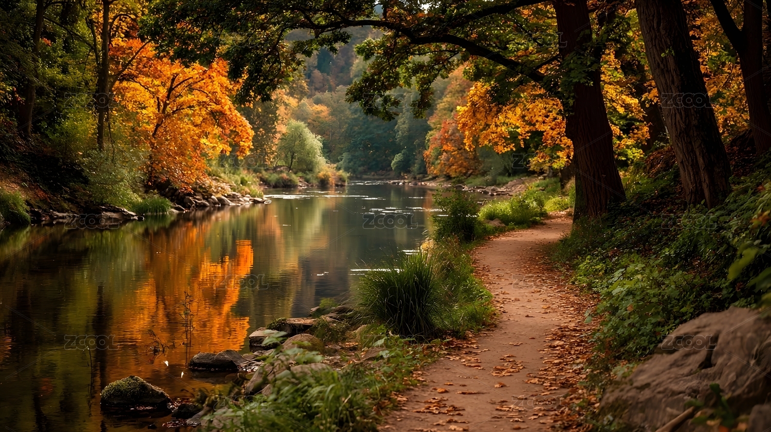 溪流穿林间的静谧 秋日山涧的色彩交响