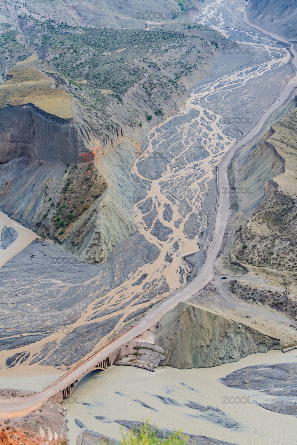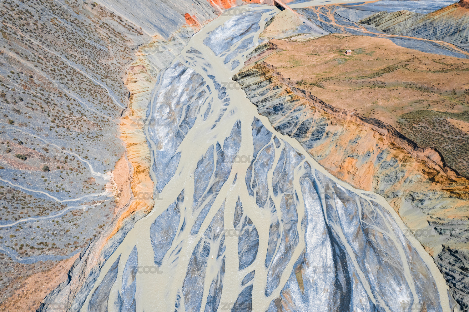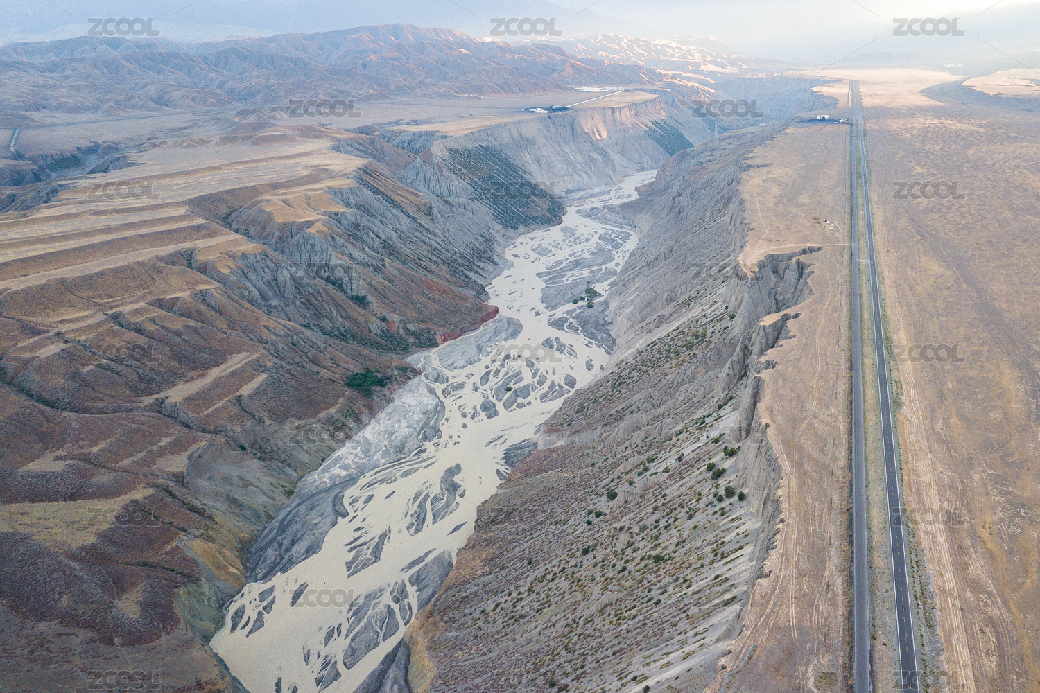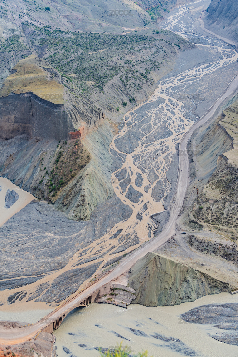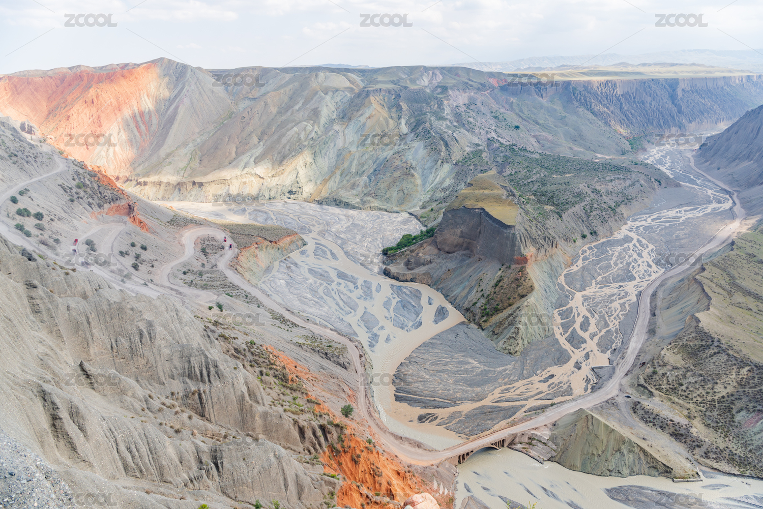 中国新疆红山大峡谷,两岸山脉之间的河床