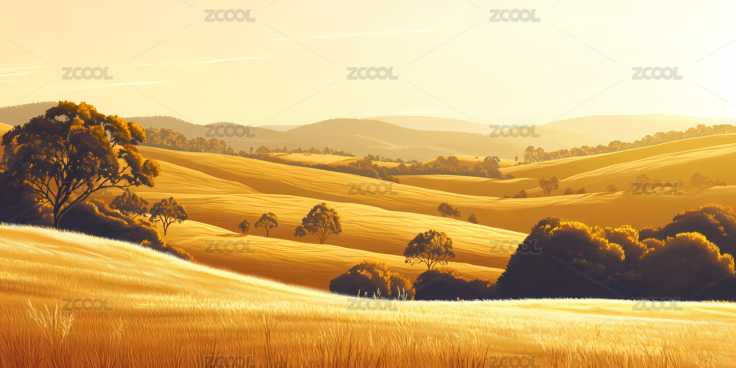 艺术,金色,风景,插画,田园,山丘,田野,乡村,农业,丰收