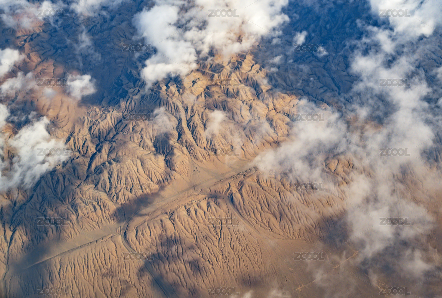 俯拍中国新疆喀什地区荒凉的地质地貌景观