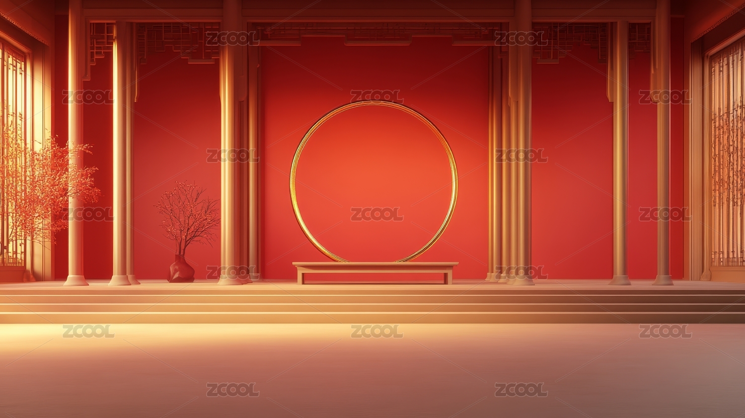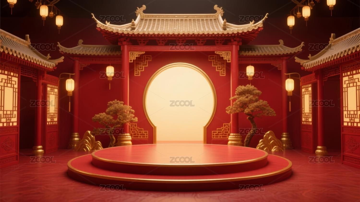 国风国潮新中式节日挂灯笼的中国红古典大门