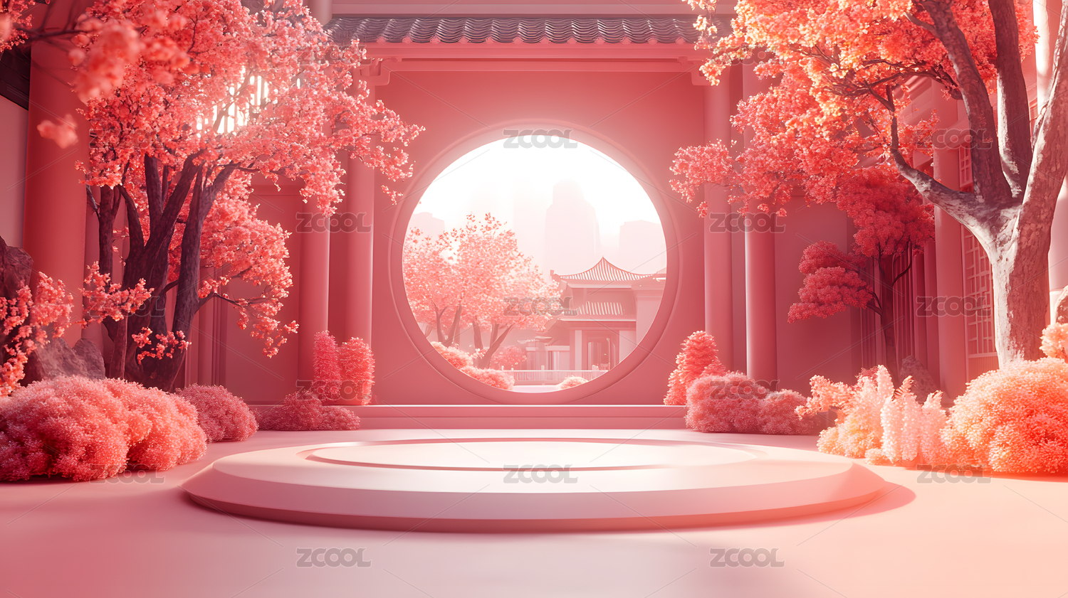 艺术,设计,传统,文化,优雅,拱门,氛围,红色,花树,石头