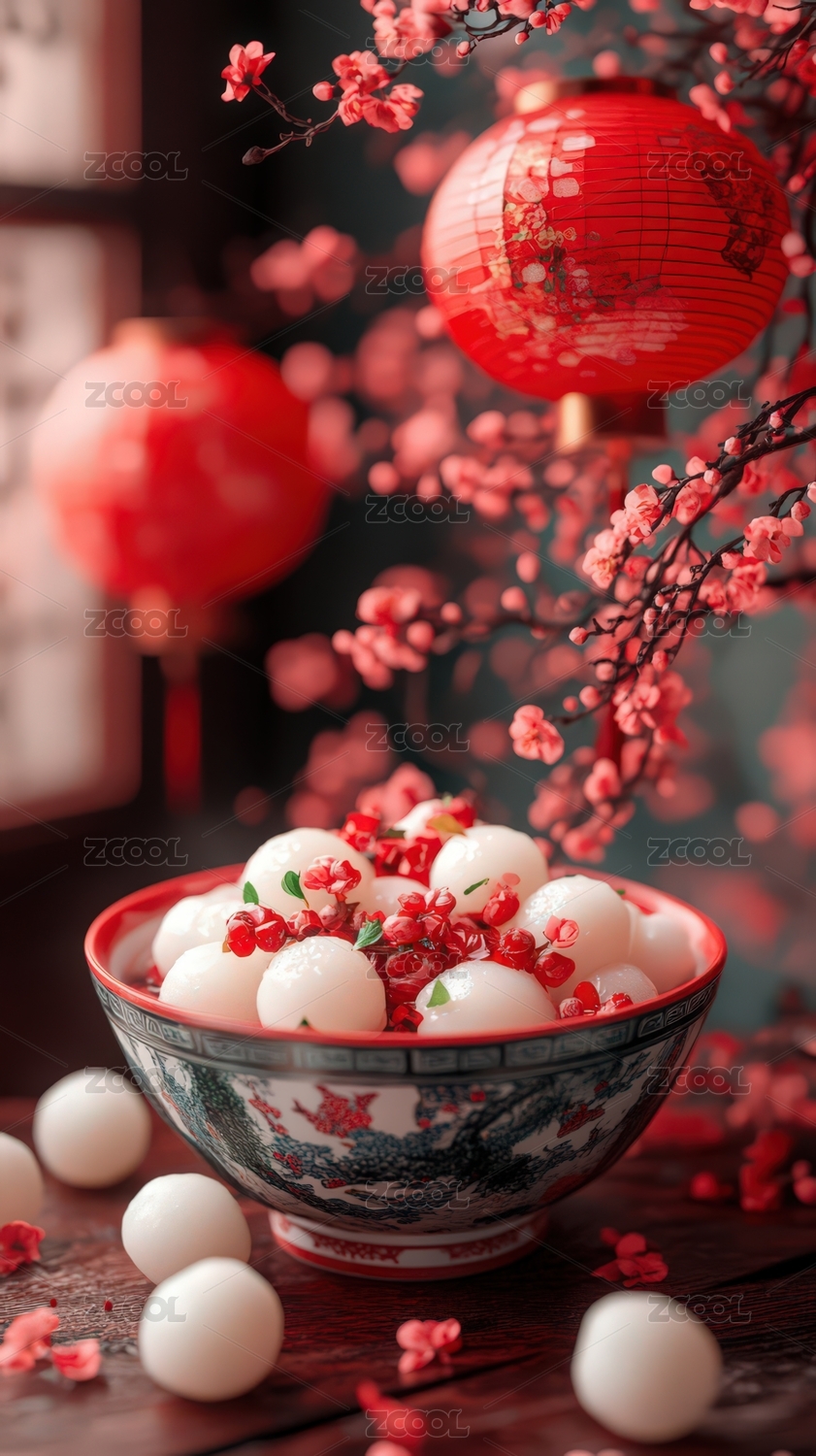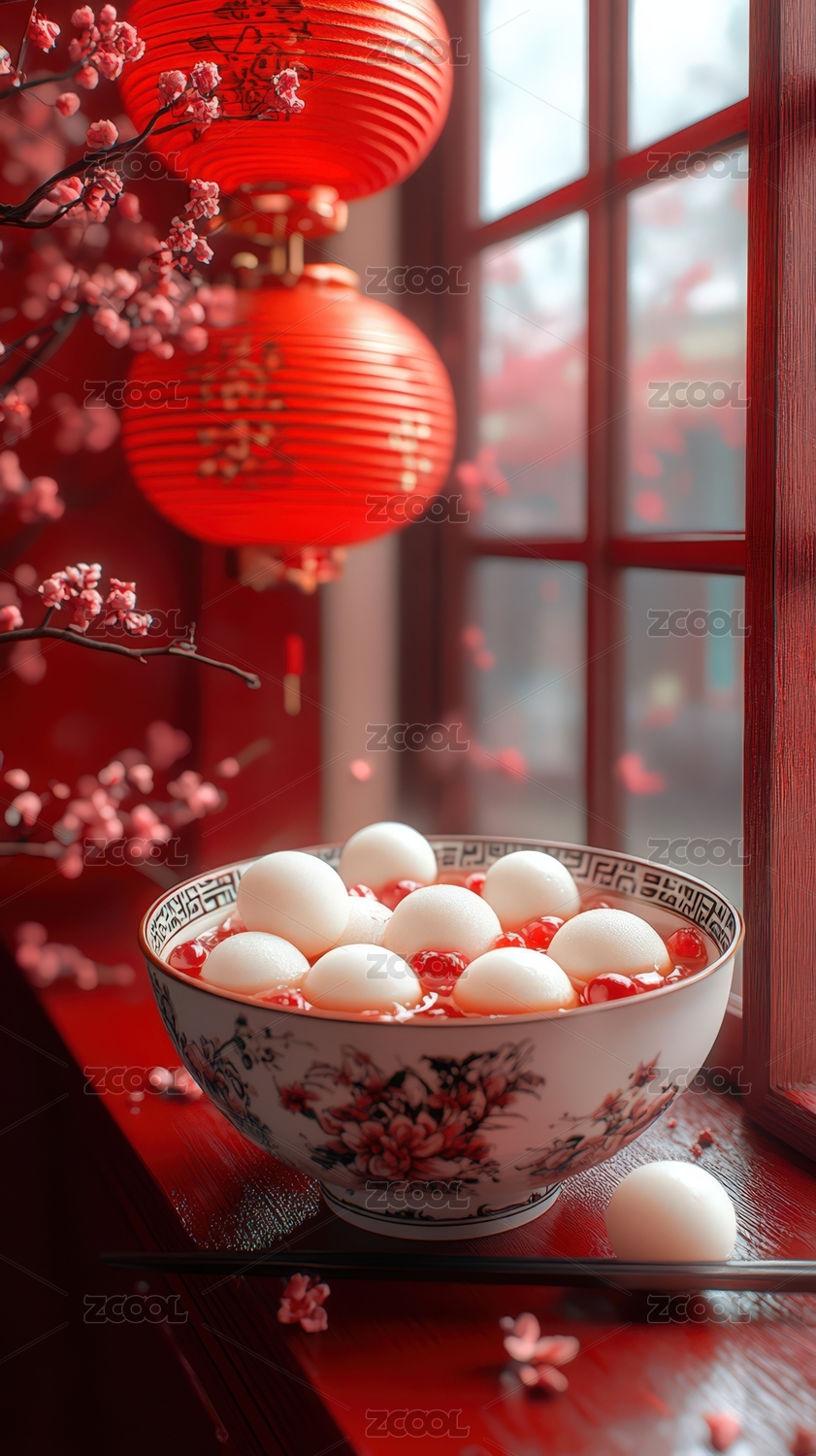 红色,节日,汤圆,喜庆,传统,美味,温馨,团圆,青花瓷碗,枸杞