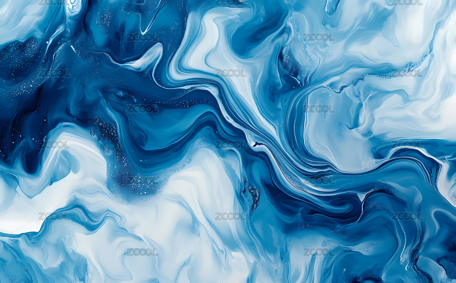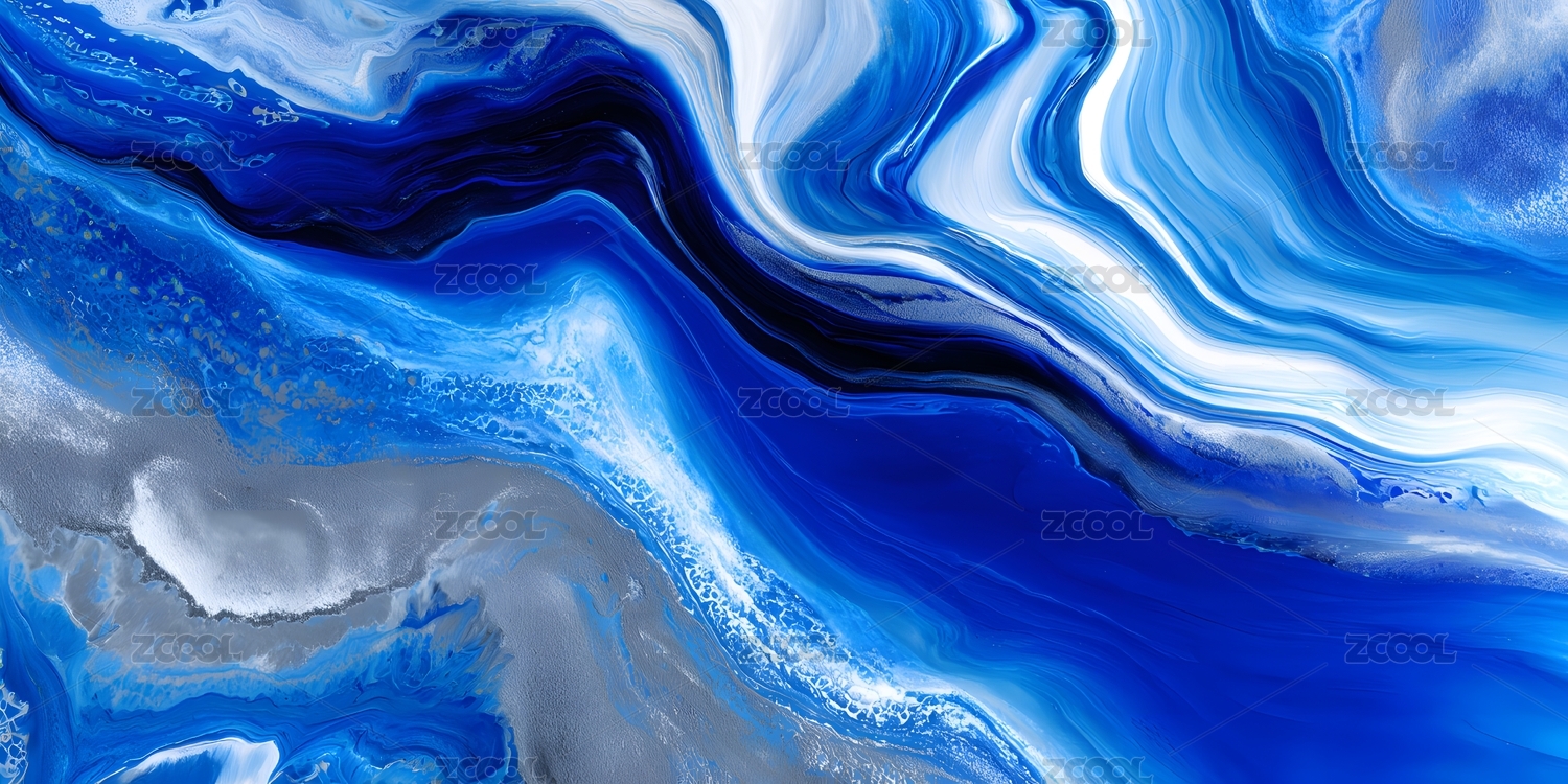 蓝色白色流动纹理抽象艺术画面