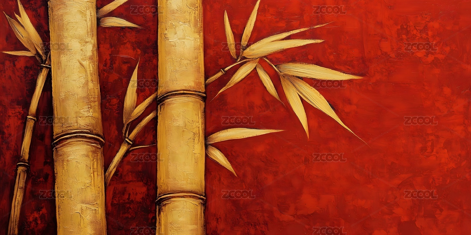 传统中国新年红色竹叶图案壁纸插画海报背景
