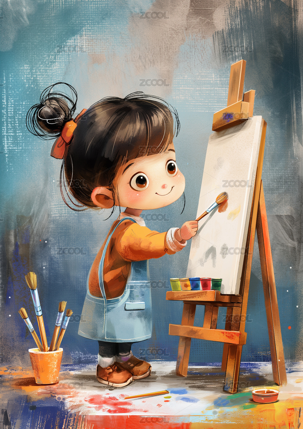 一个可爱小女孩正在画板上画画