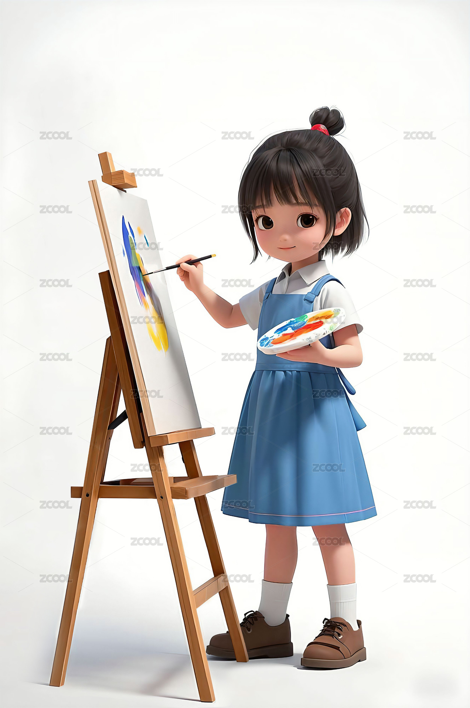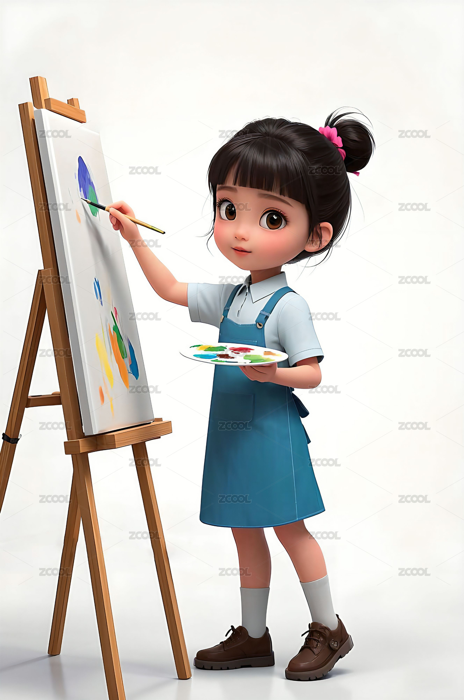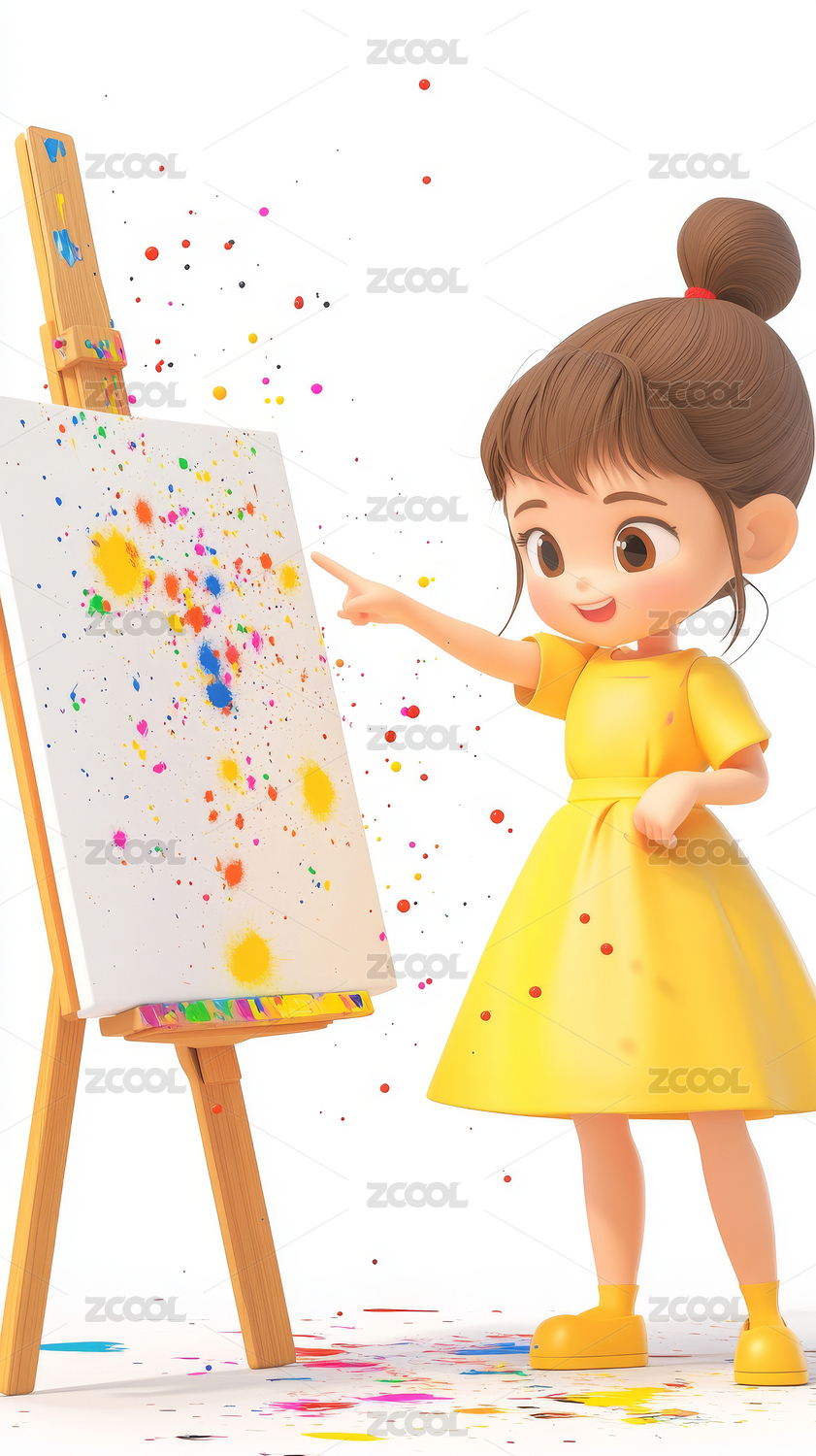 3D风格美术培训一个小女孩在学习画画