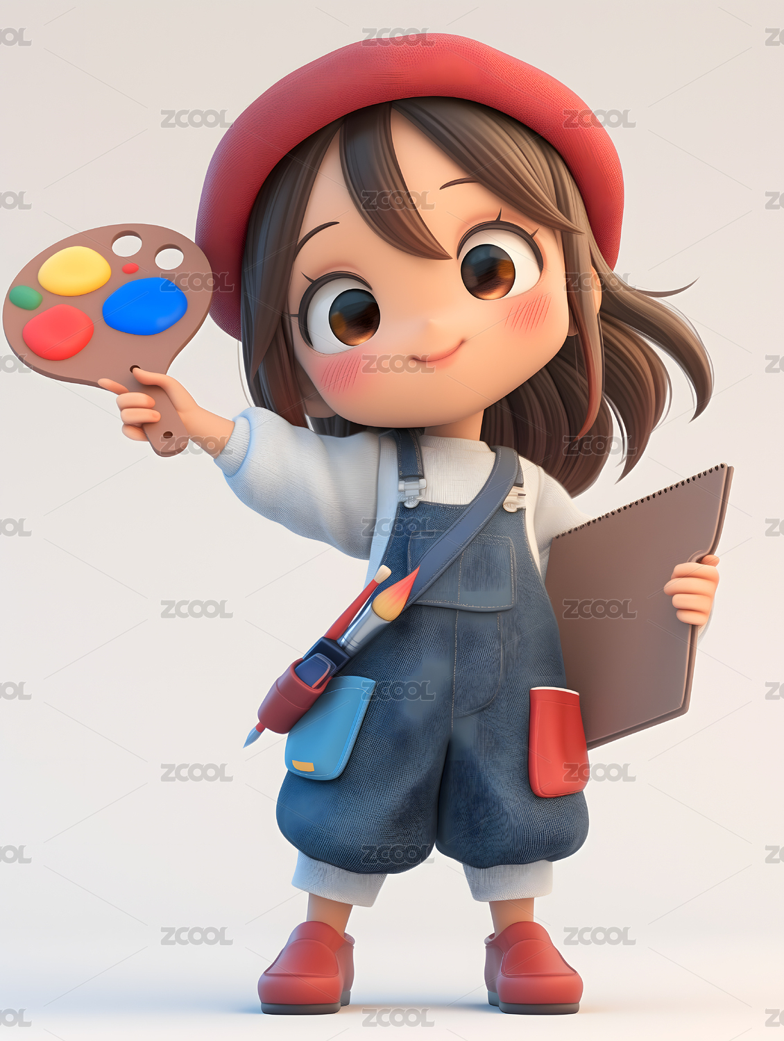 3D渲染的卡通绘画少儿