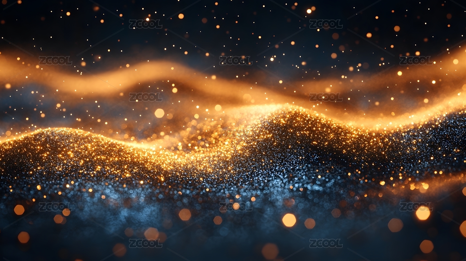 金色粒子梦幻波浪背景图