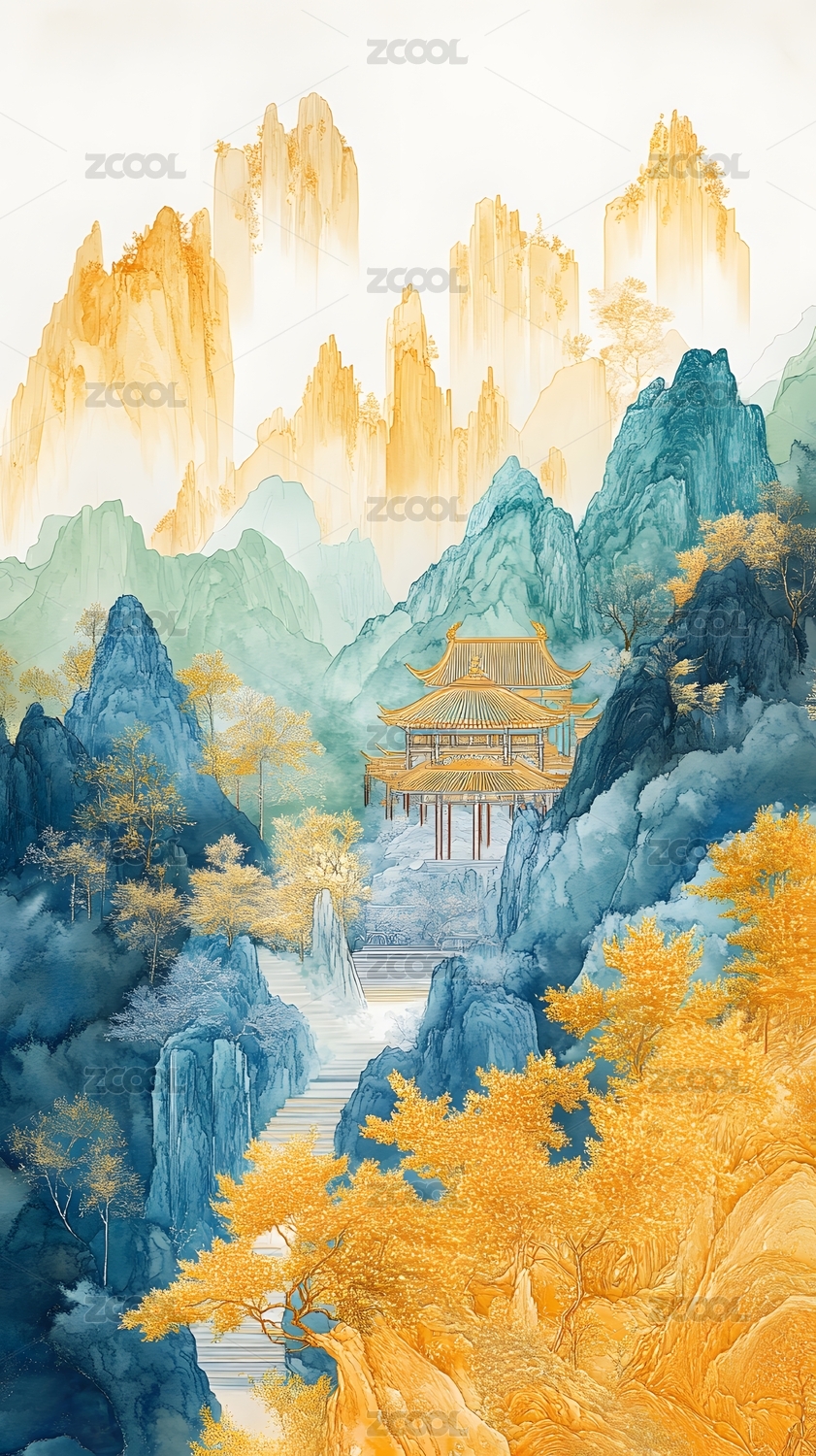 新中式鎏金山水背景