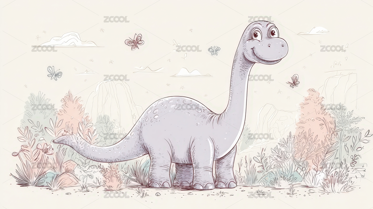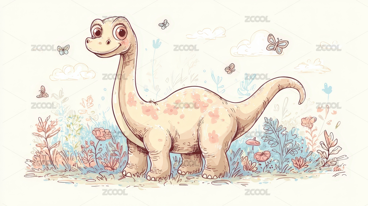 恐龙插画野生动物可爱卡通儿童节海报背景