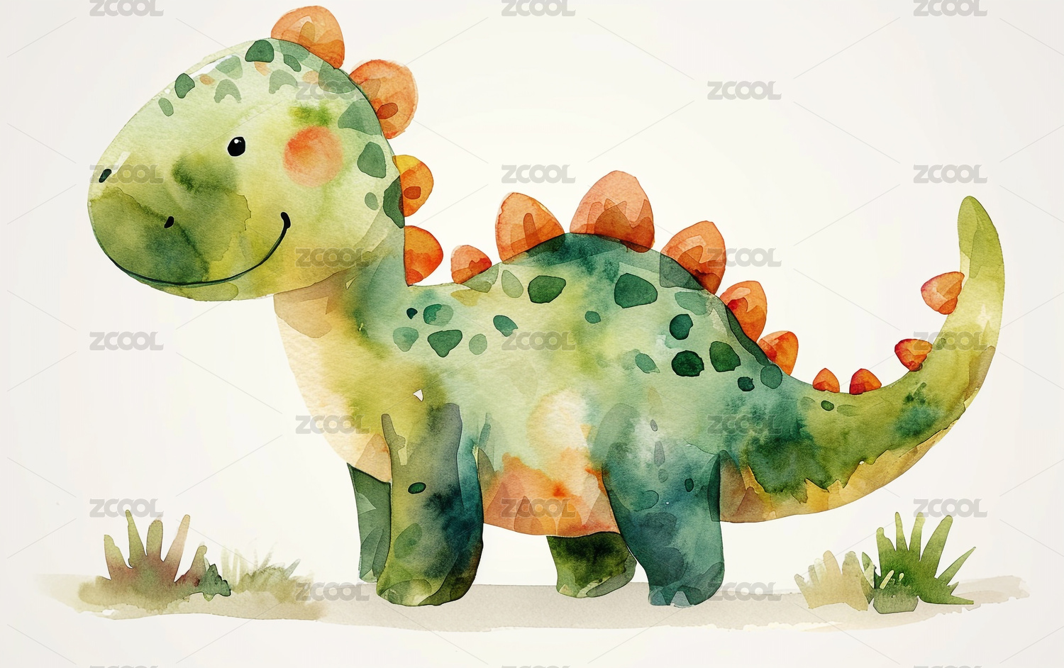 恐龙,动物,自然,插画,可爱,背景,卡通,儿童,童趣,橙色