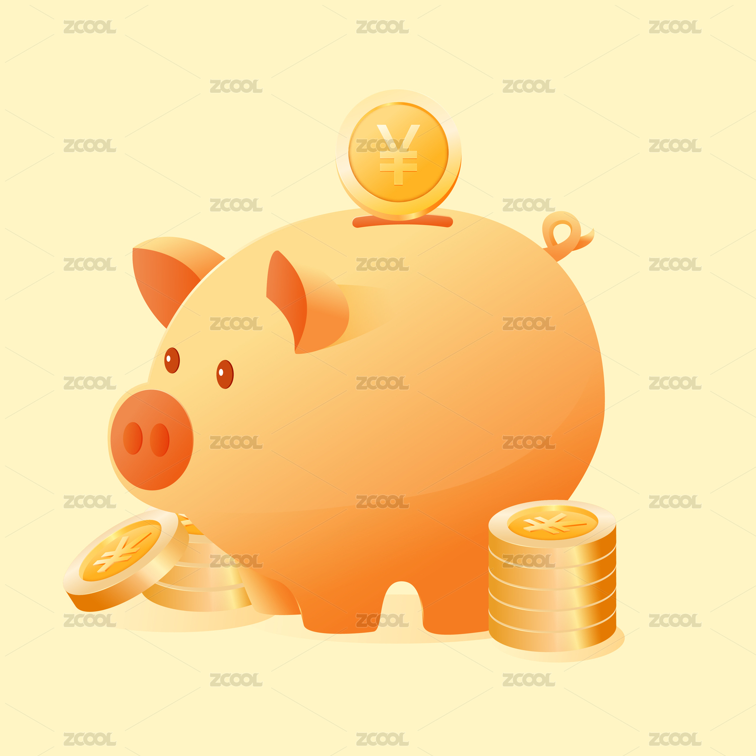 小猪储钱罐和金币箭头图案