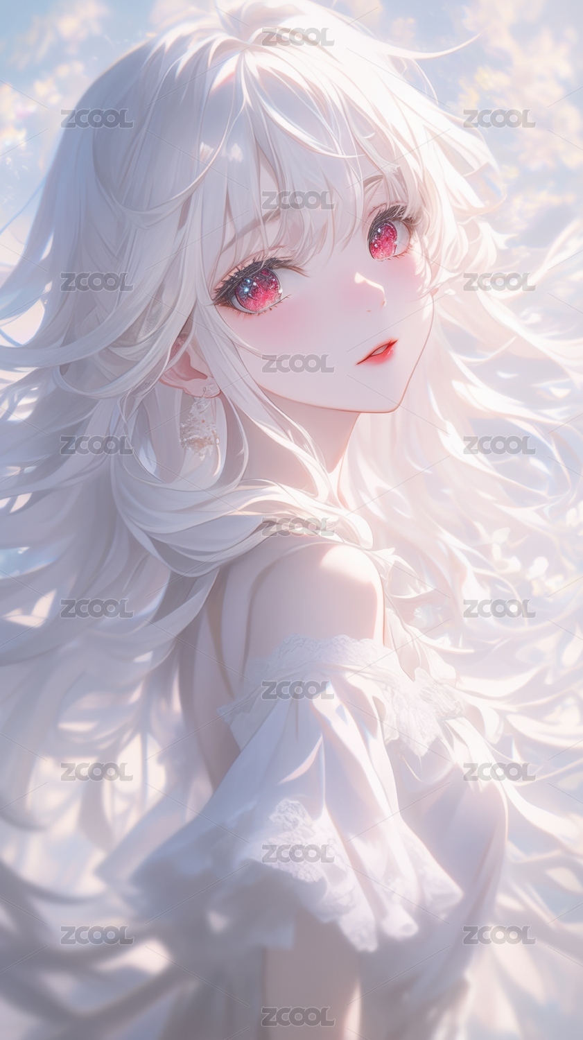 艺术,绘画,动漫,人物,少女,白发,肖像,红眸,写真,美图