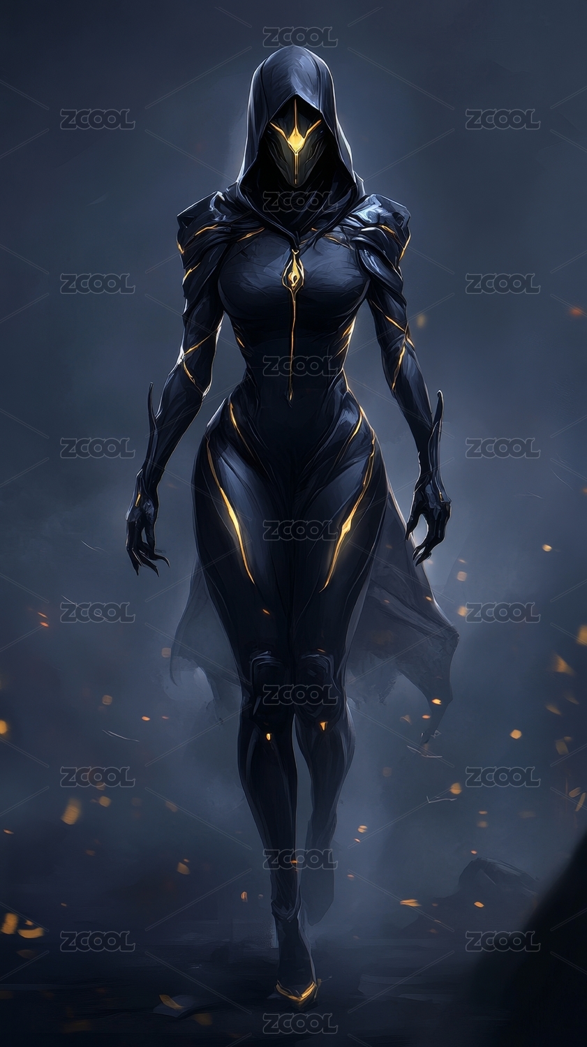 女战士,奇幻,蓝色,闪电,盔甲,魔法,神秘,强大,黑暗,光影