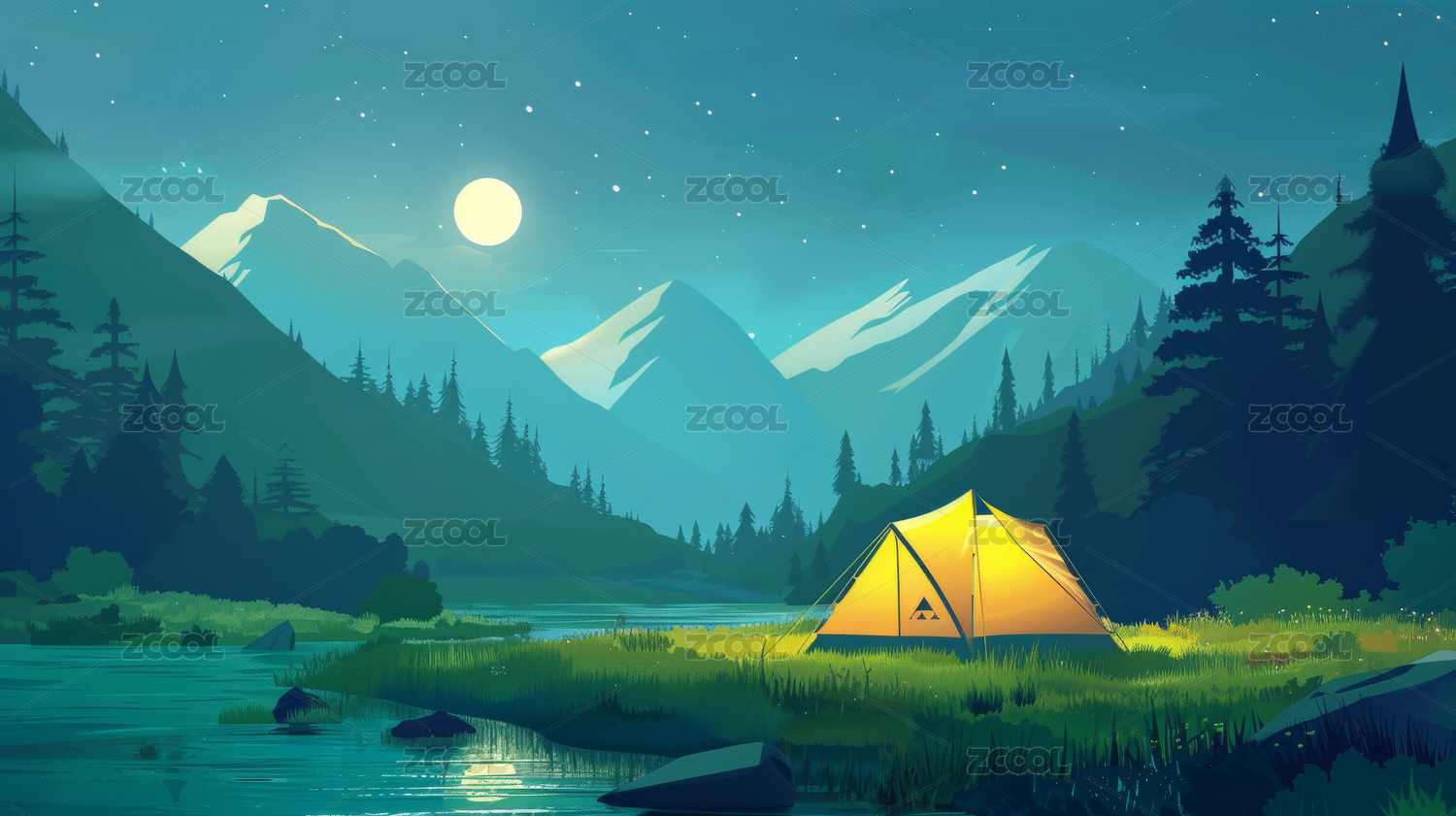 湖泊, 夜晚, 帐篷, 户外, 旅行, 营地, 宁静, 风景, 篝火, 温暖