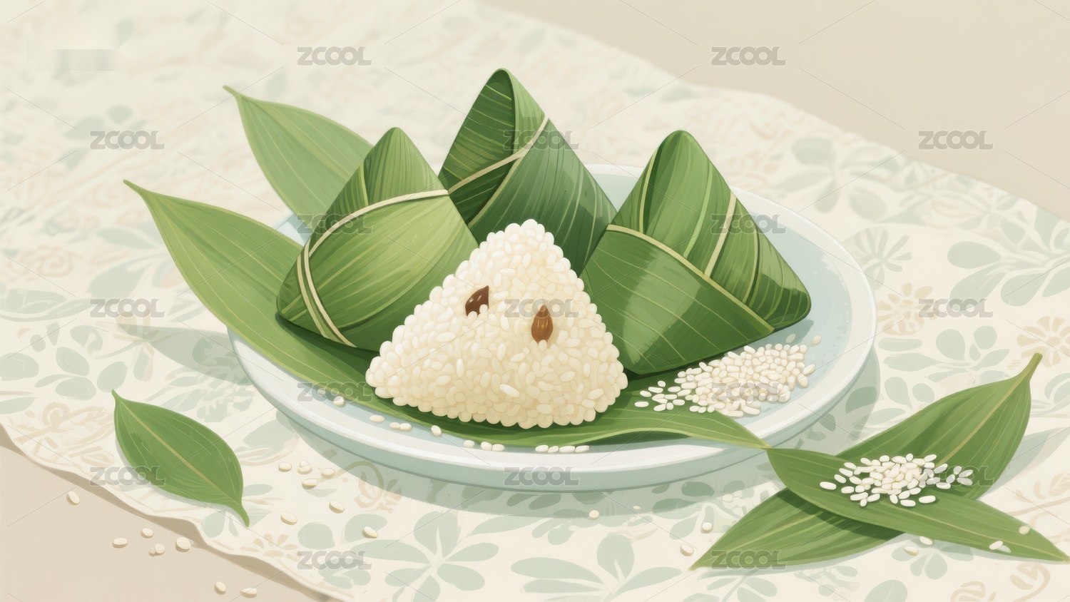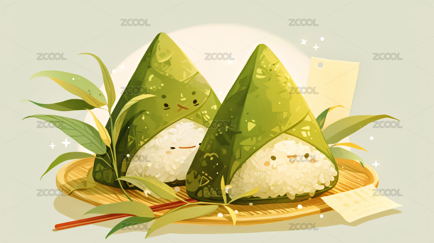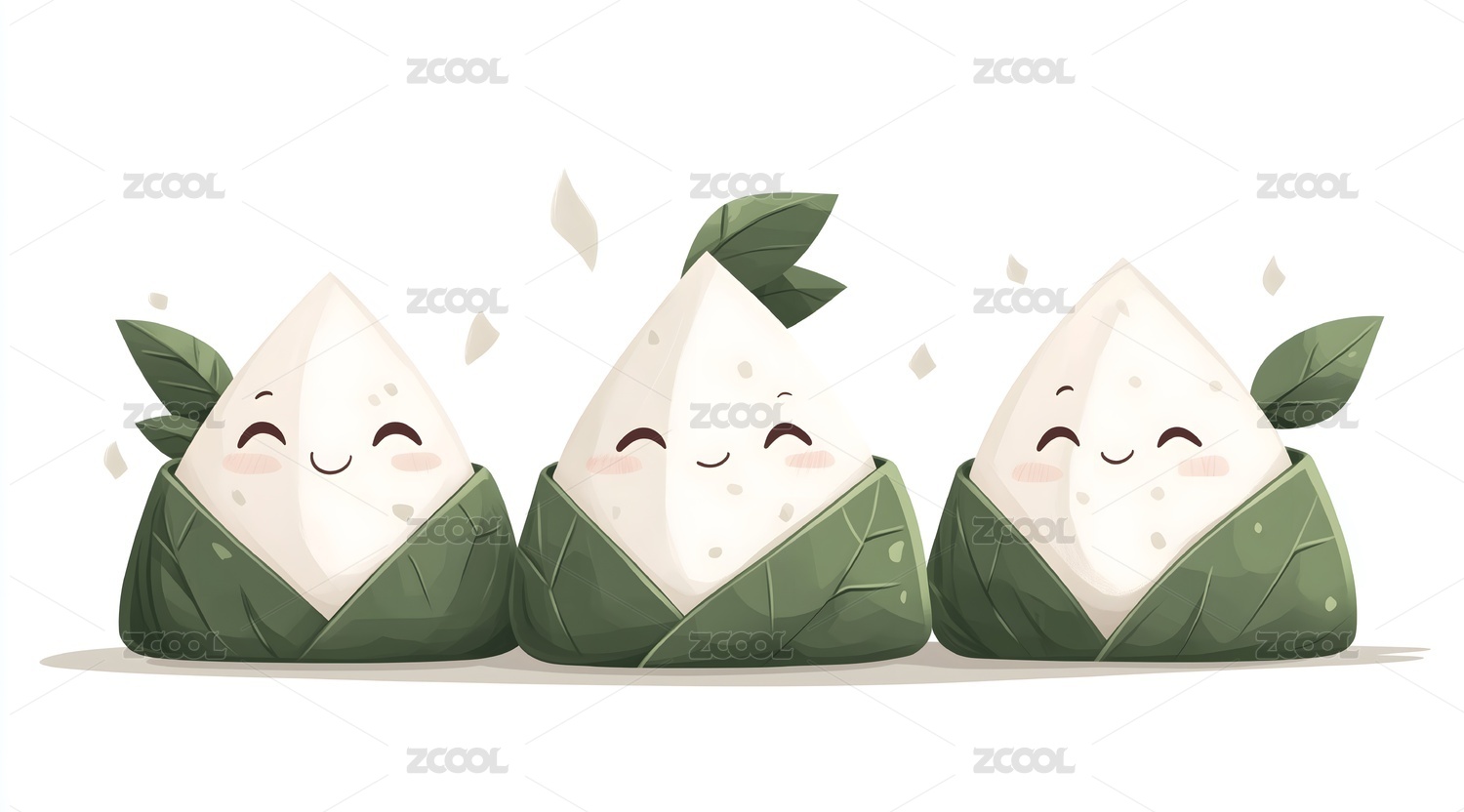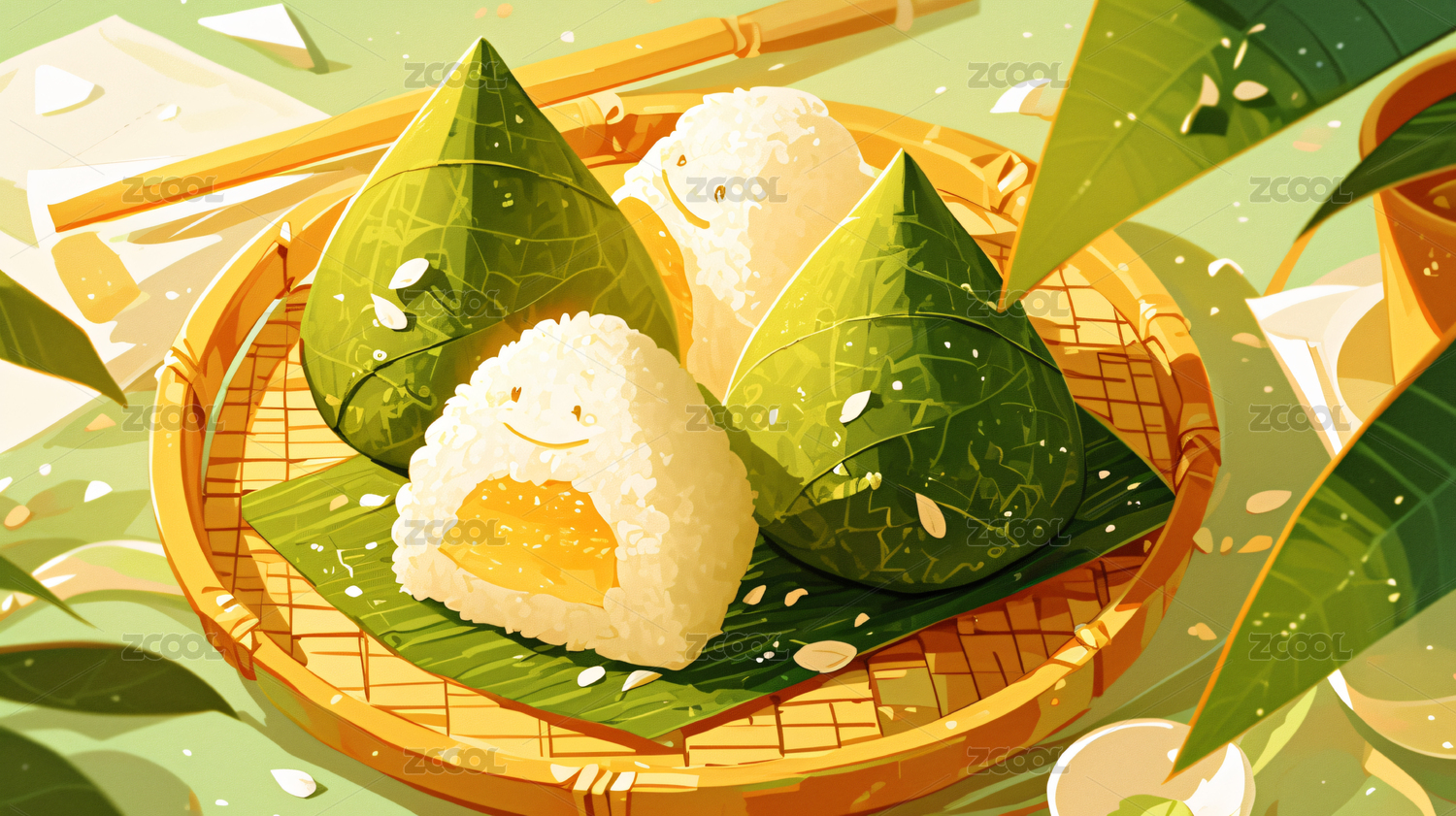 插画,可爱,卡通,传统,节日,快乐,叶子,手绘,粽子,食物