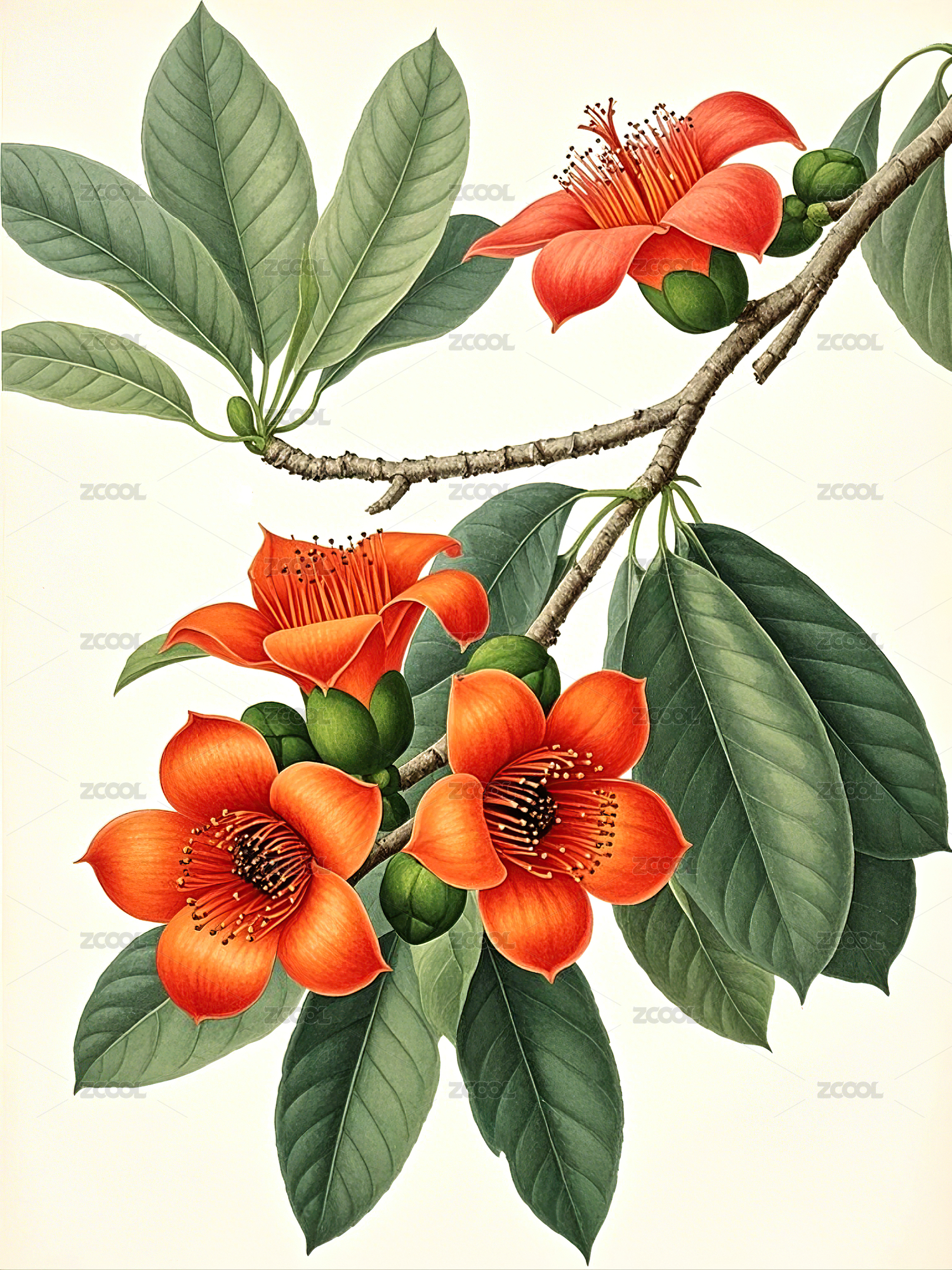 中国风传统手绘植物花卉木棉花插画