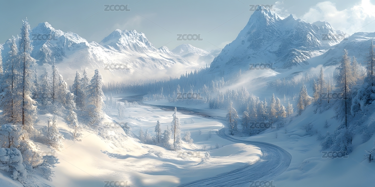 冬日雪山松林美景