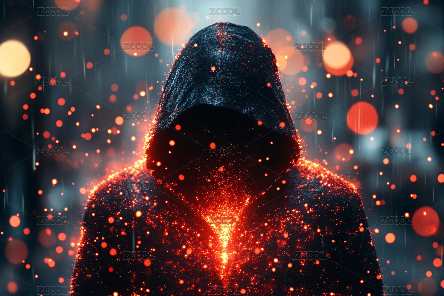 神秘兜帽人物与闪烁光点