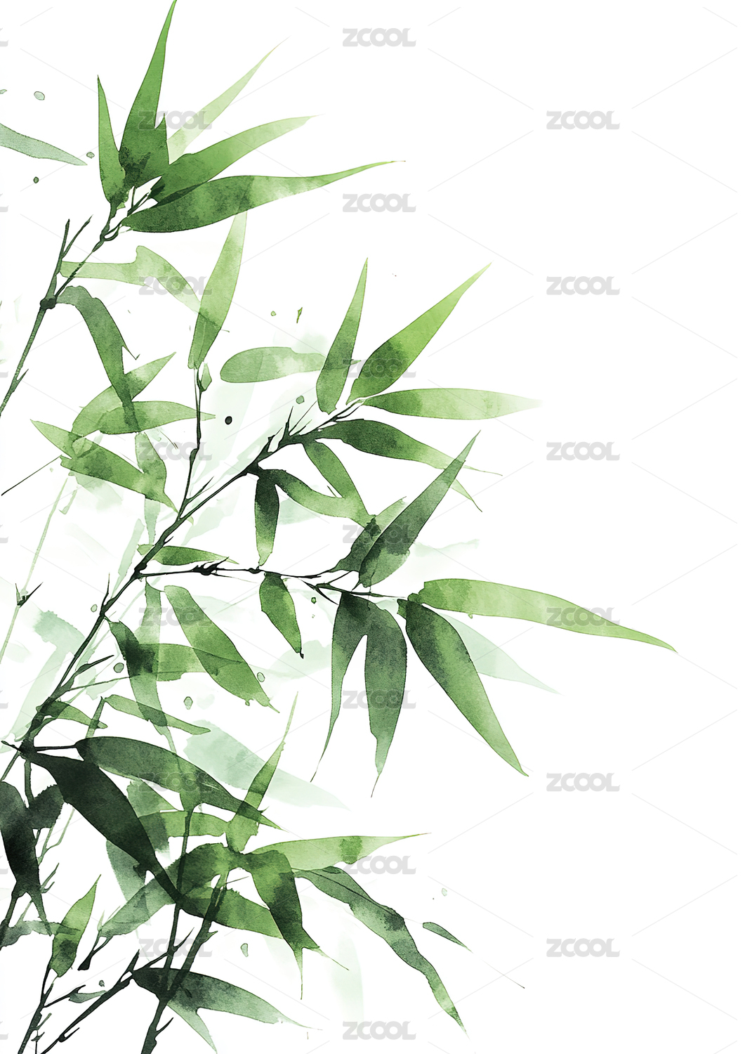 绿色,植物,自然,清新,背景,艺术,叶子,水彩,枝条,水墨画