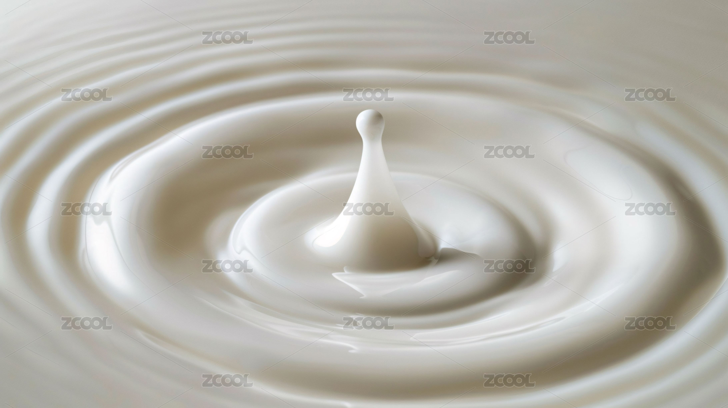 倒牛奶溅起的水珠和波纹,近景,牛奶饮品广