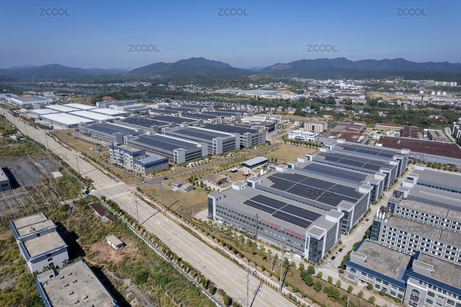 航拍现代化工业园区厂房