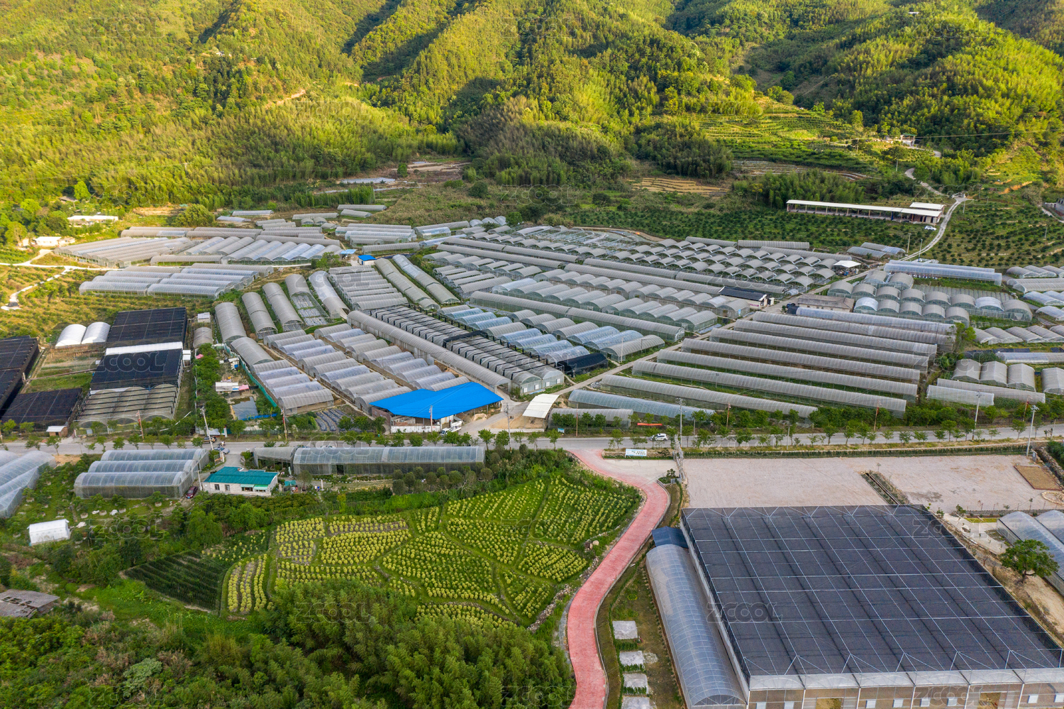 郊外农村的田野和种植大棚