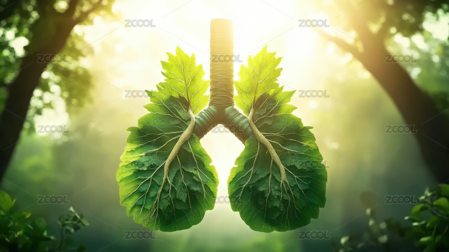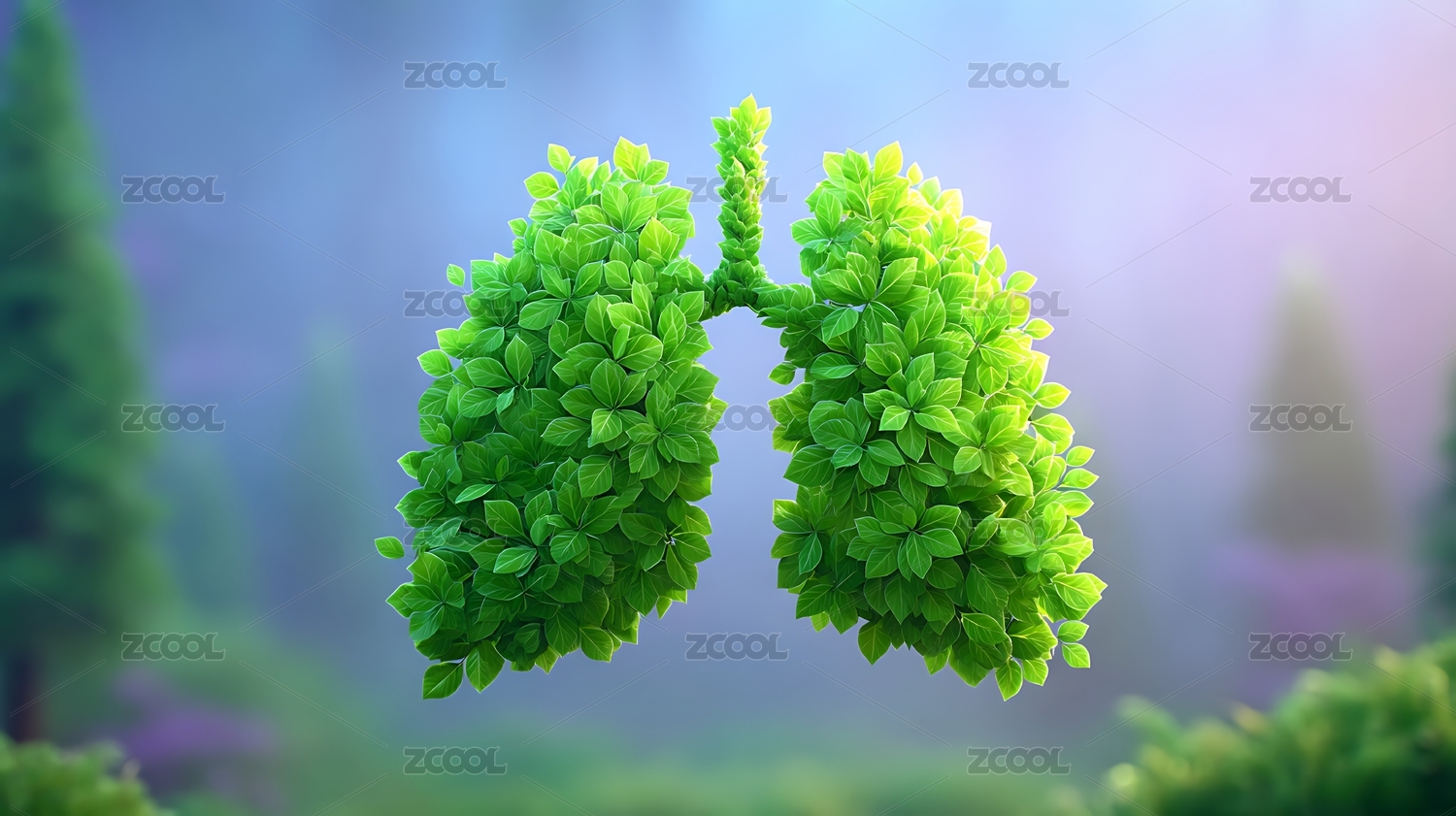 一对由鲜绿色叶片构成的肺部形状