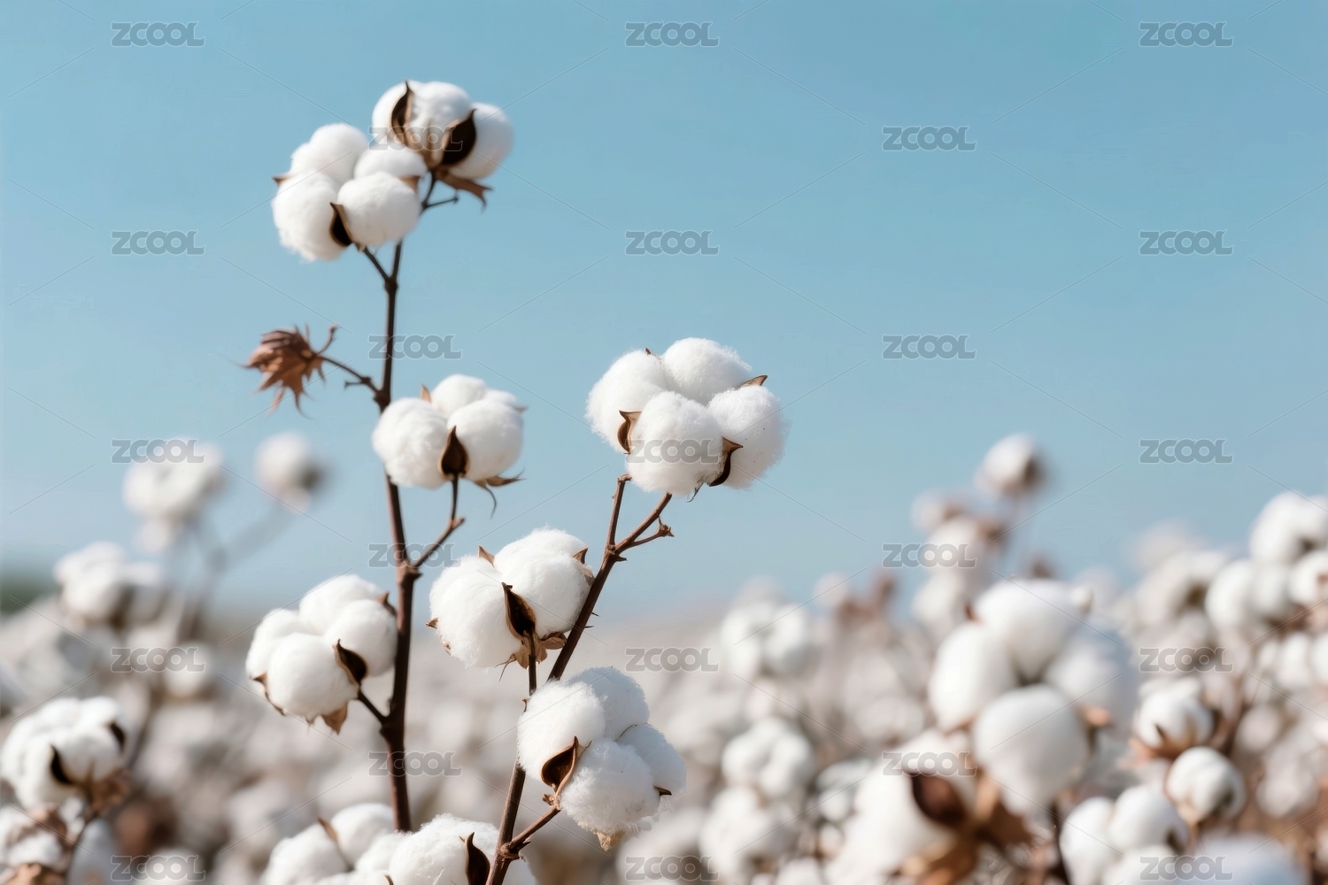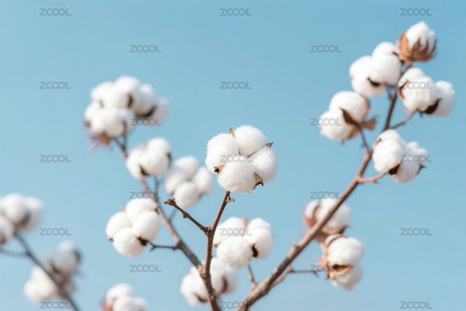 棉花特写蓝天背景