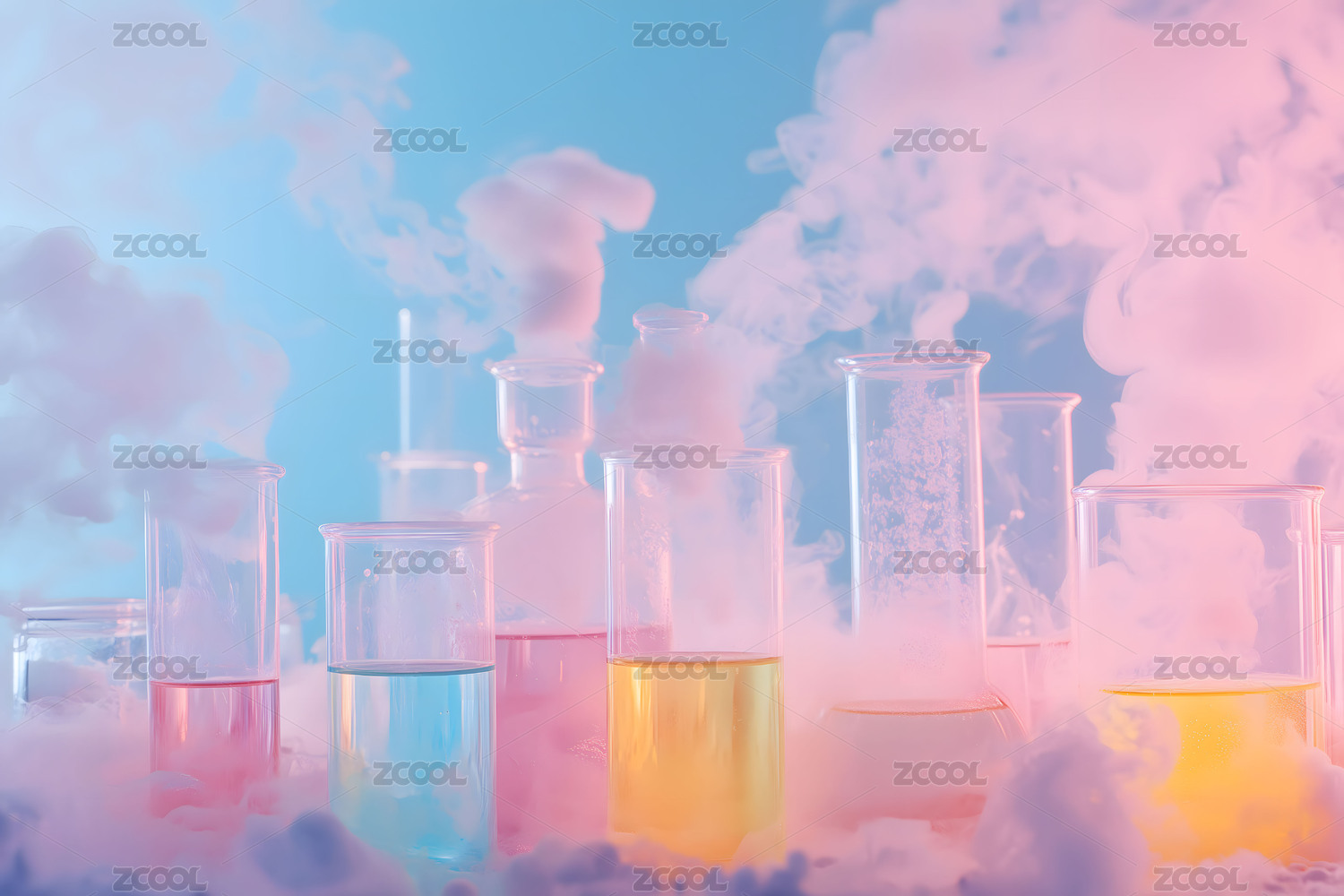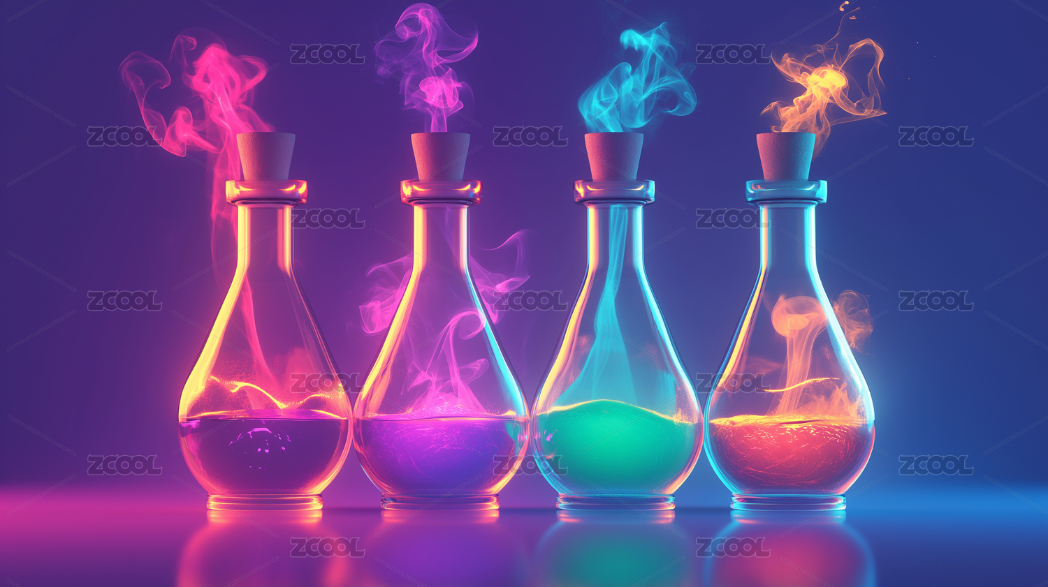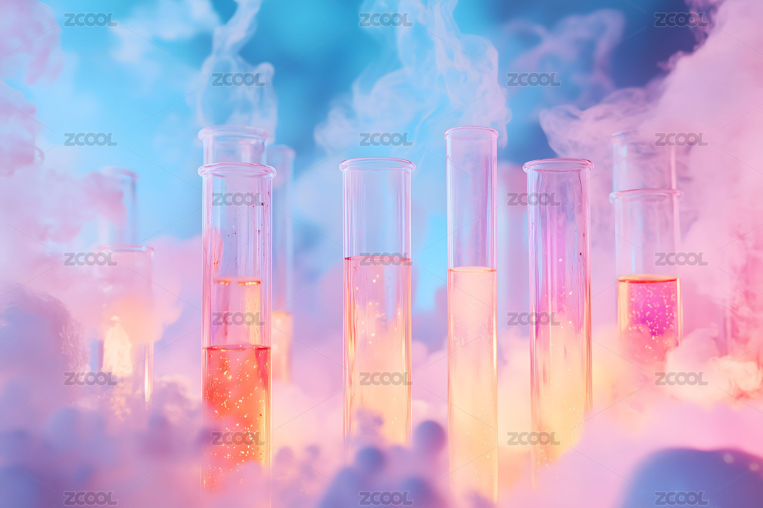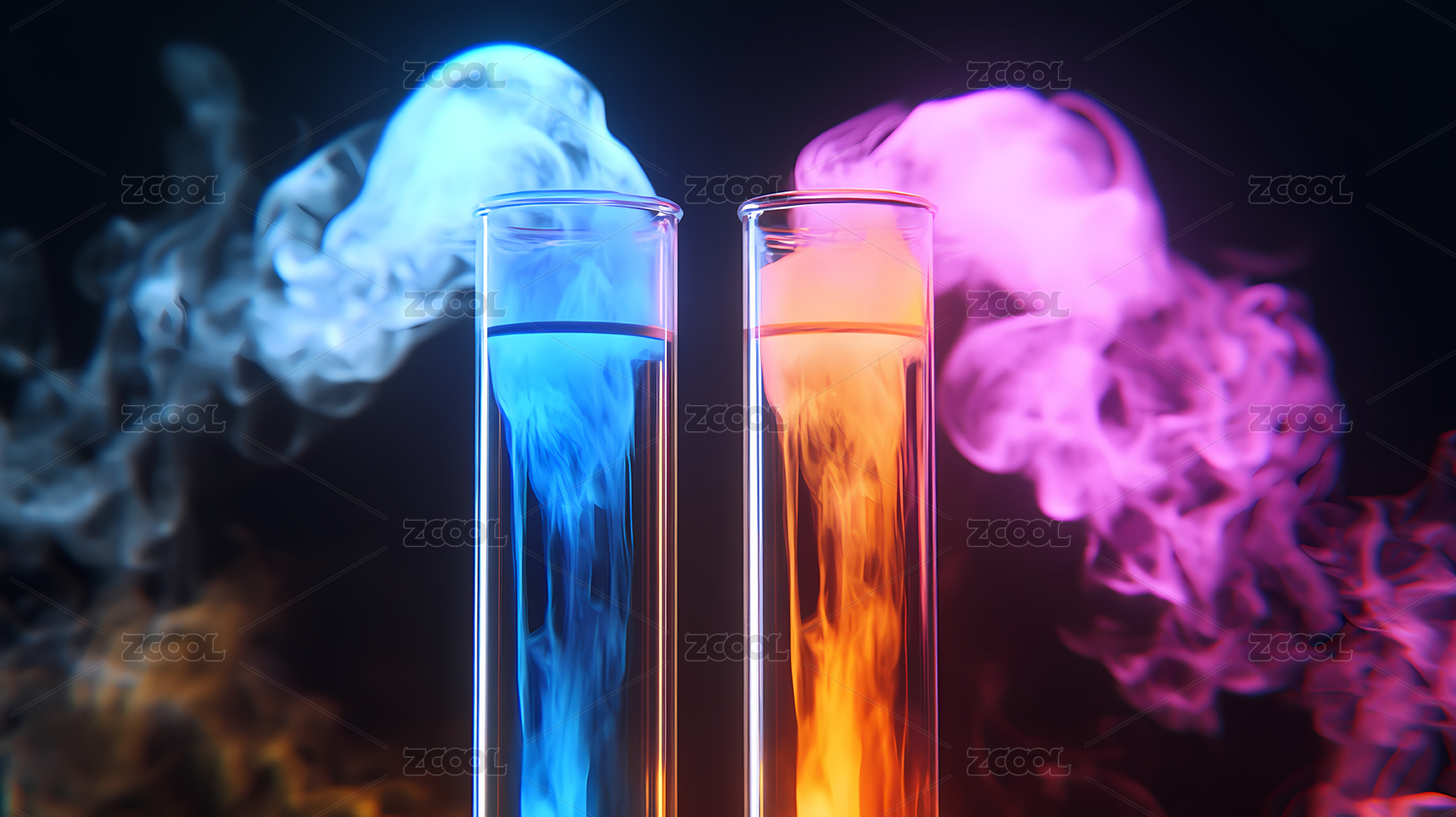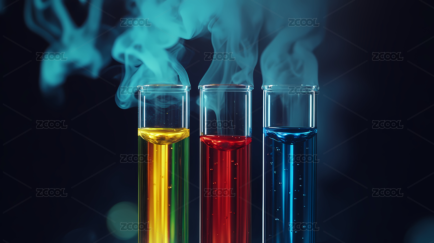 试管,液体,蓝色,黄色,红色,烟雾,实验,颜色,背景,科技