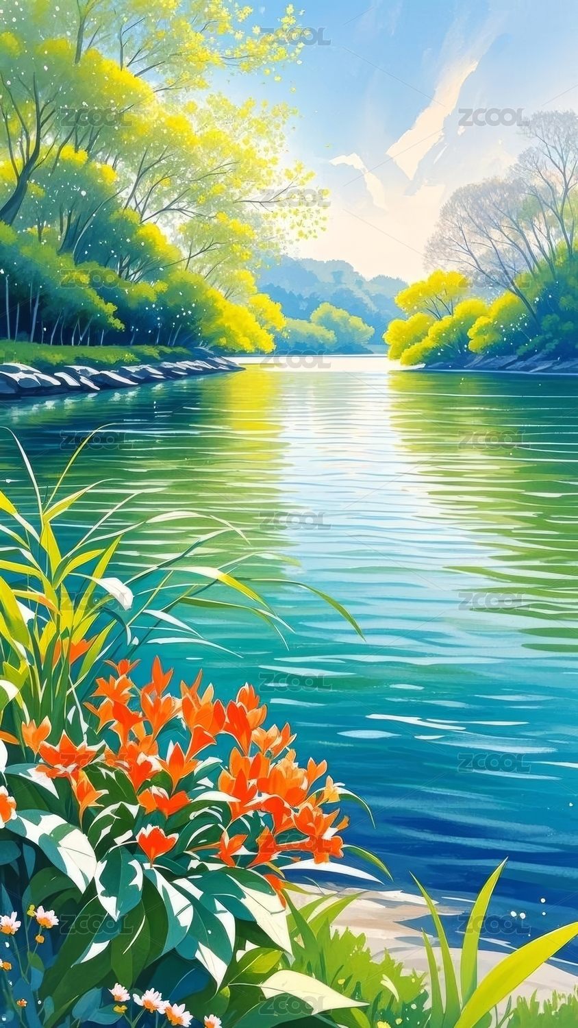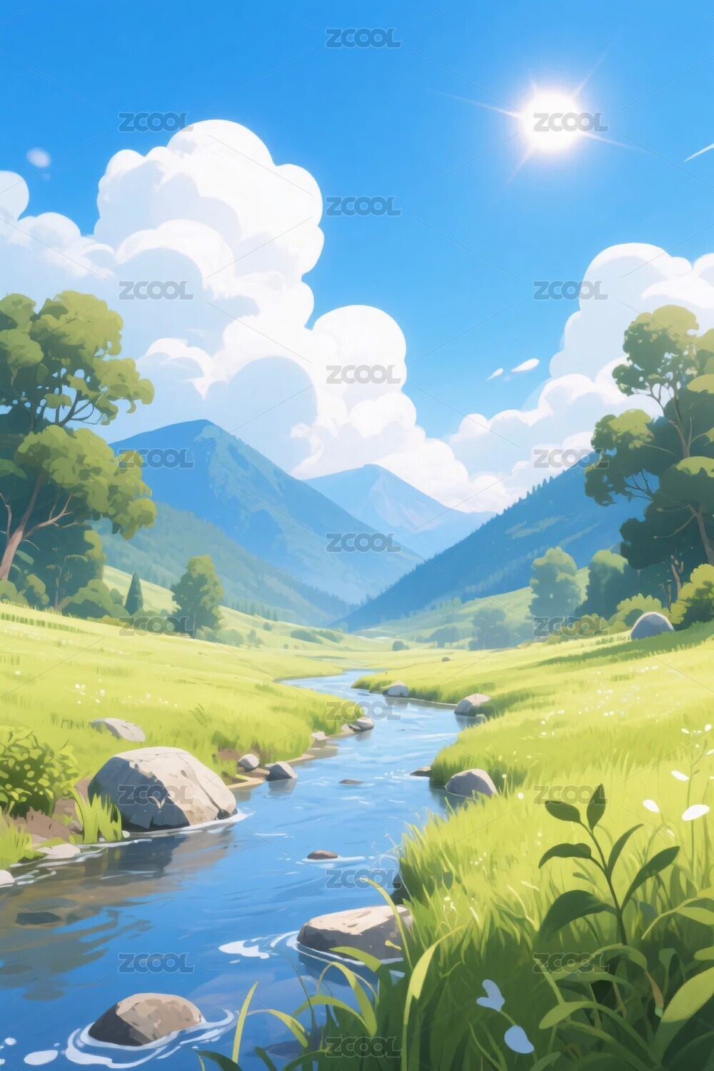 背景,花朵,阳光,景色,自然,风景,山谷,溪流,河流,蓝天