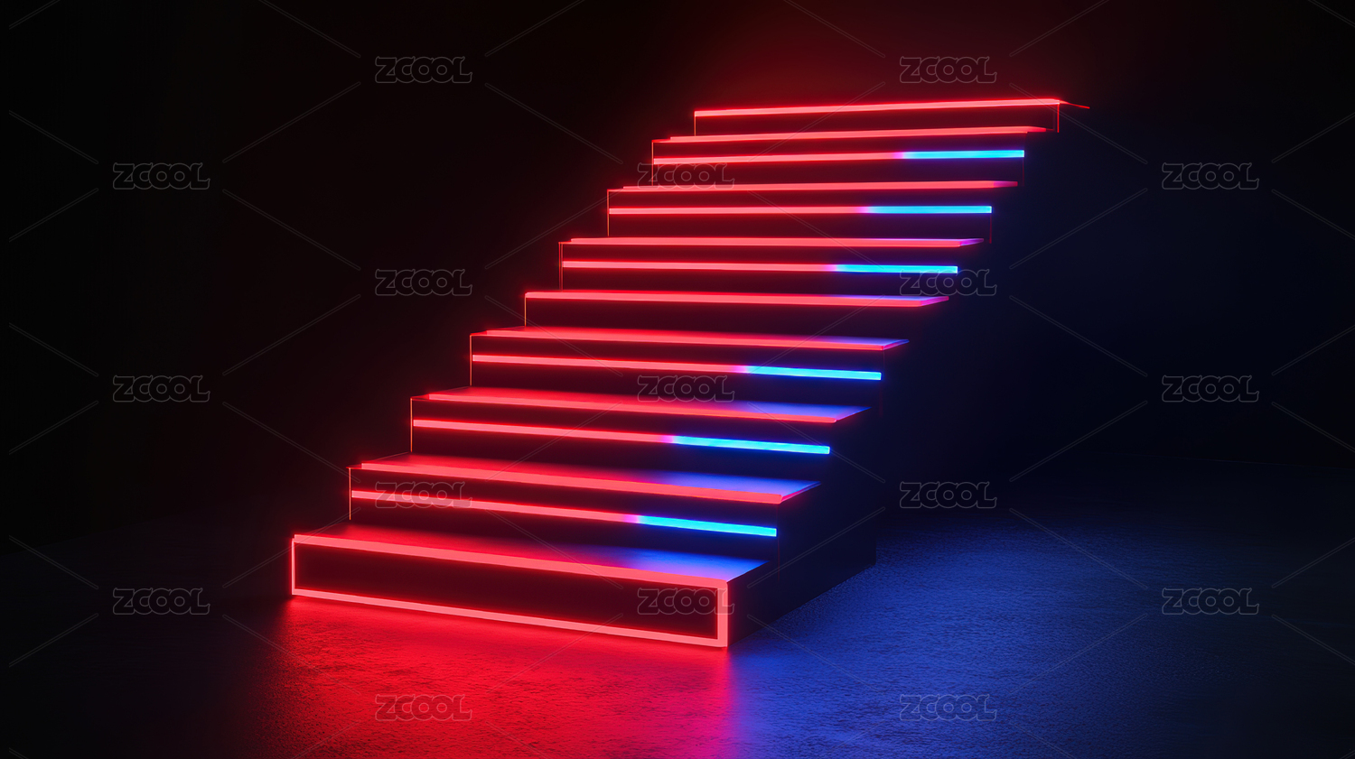 彩色灯光下的空楼梯