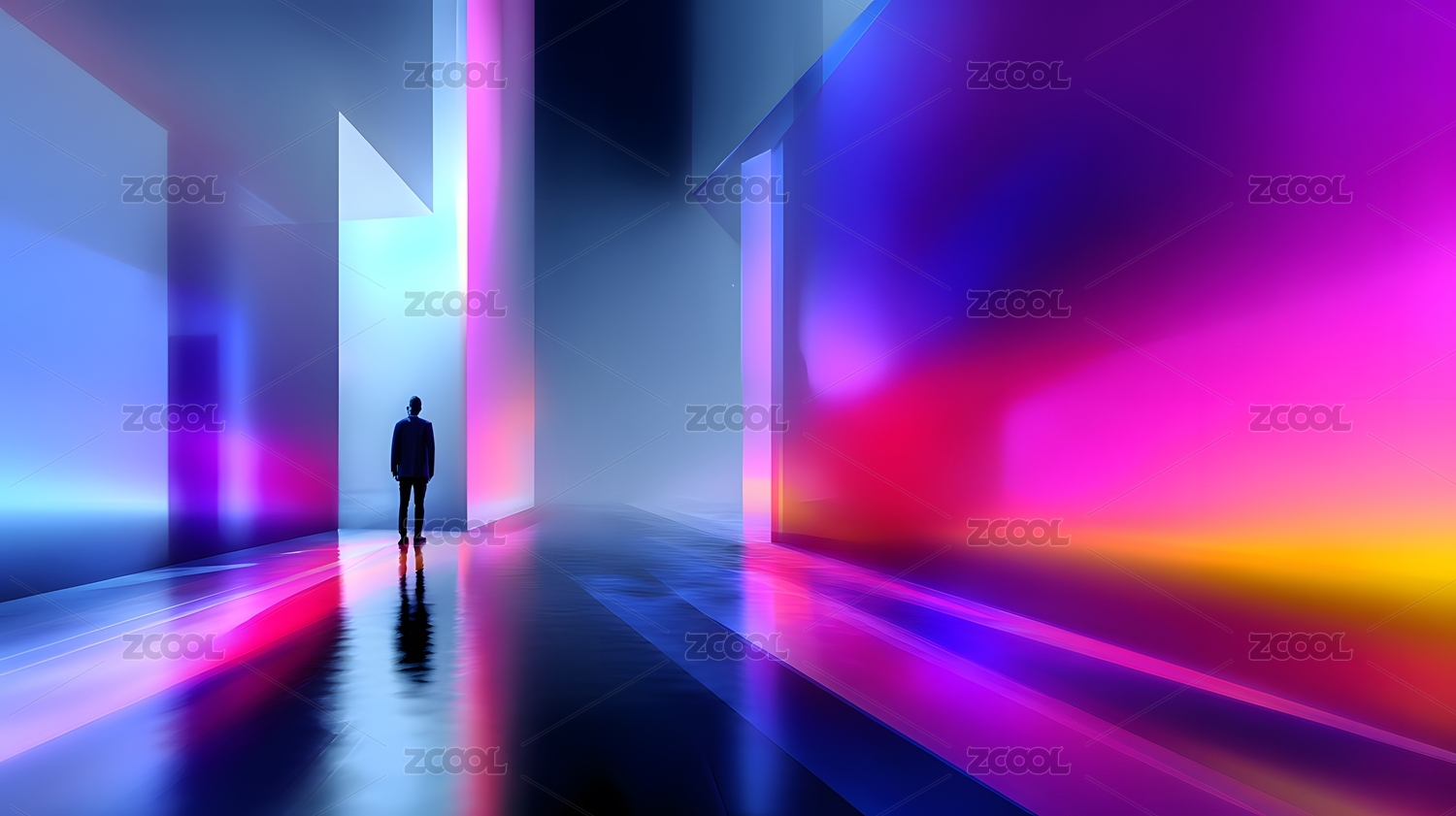 色彩走廊中的剪影