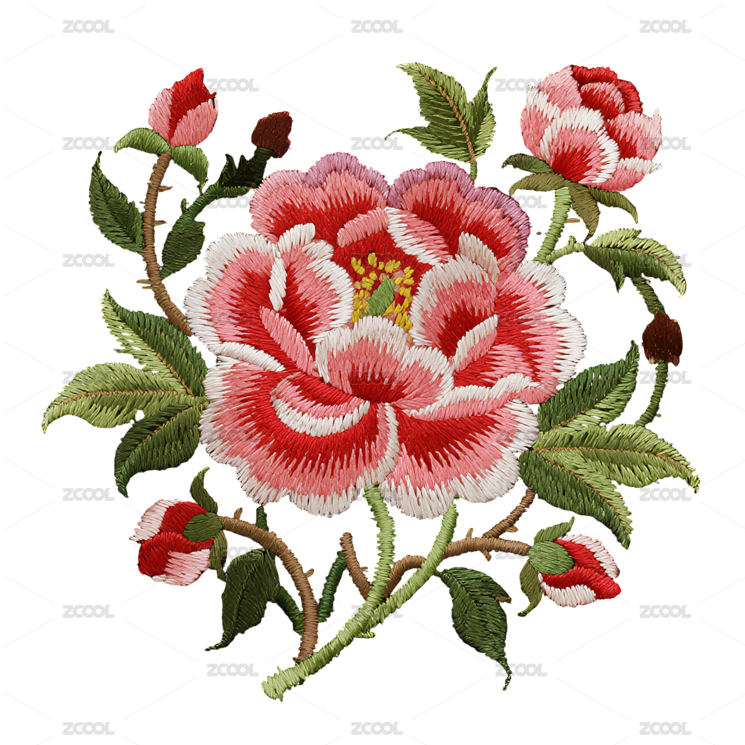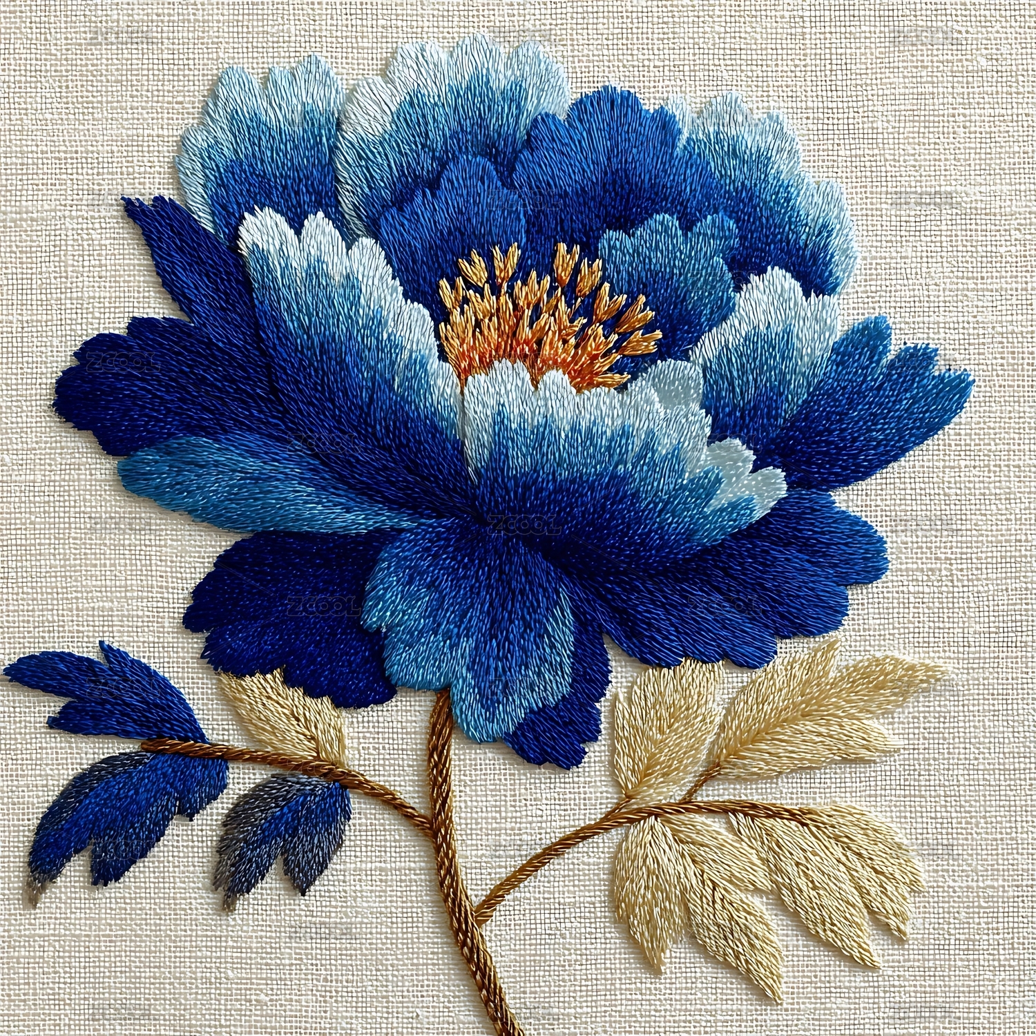 DXCZ202503,刺绣,花朵,蓝色,花瓣,花蕊,白色,绿色,花苞,纹理