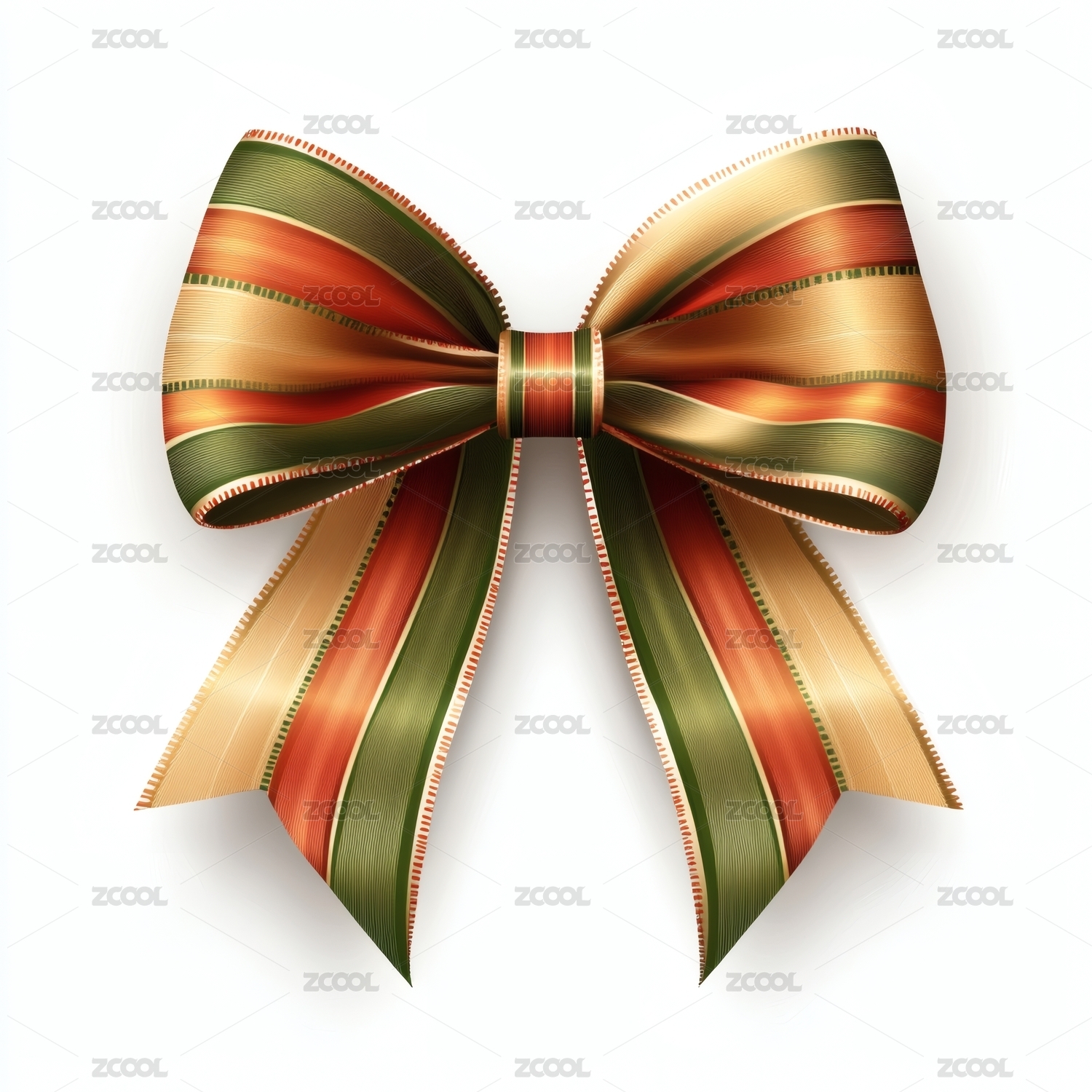 金色蝴蝶结丝带节日礼物装饰盒子包装元素